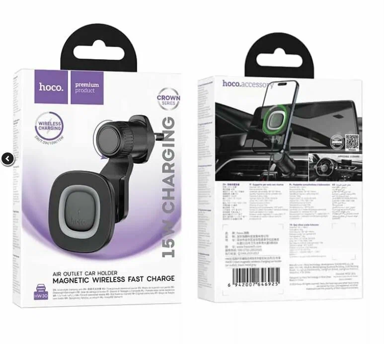 - Магнитный автомобильный держатель для телефона с беспроводной зарядкой 15W