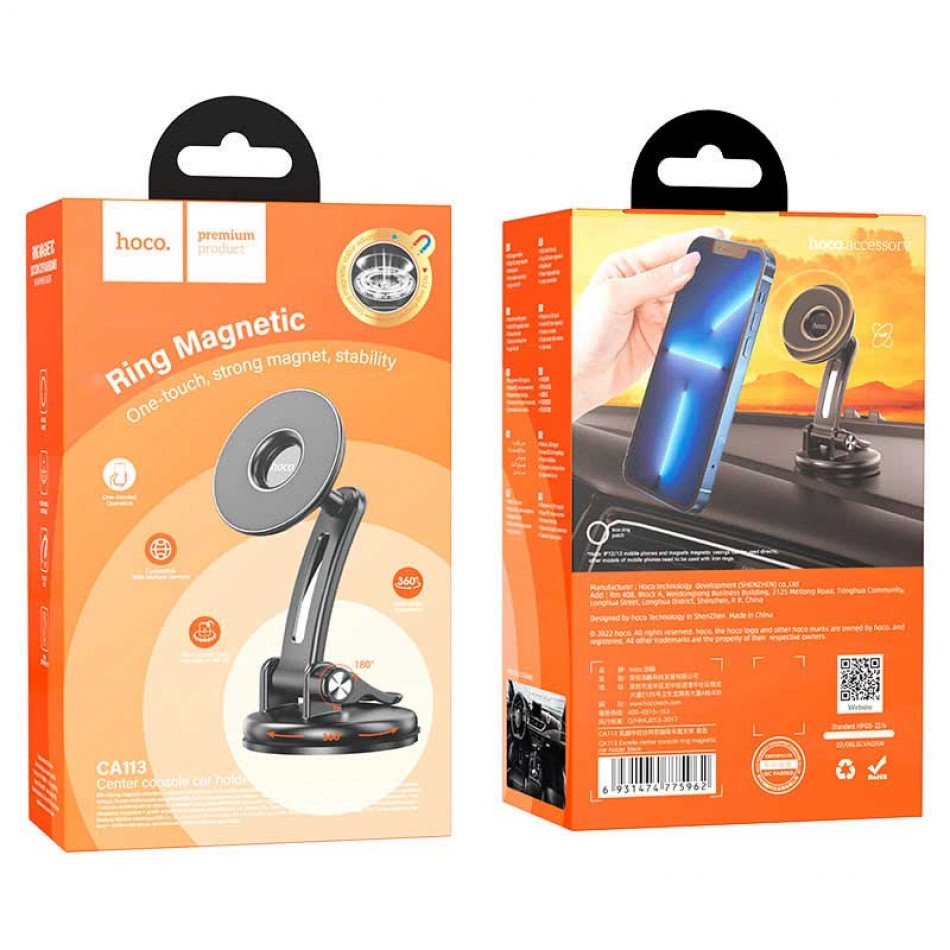 В мире современных технологий, когда каждый день мы используем устройства для работы и развлечений, важность качественного автомобильного аксессуара трудно переоценить. Автомобильный магнитный держатель телефона Hoco CA113 Excelle Ring Magnetic Car Holder (для центральной консоли) является одним из таких устройств, которое сочетает в себе стильный дизайн, надежность и удобство использования.Держатель Hoco CA113 выполнен из высококачественных материалов: ABS-пластика, силикона и мощного N52 кольцевого магнита. Этот выбор материалов обеспечивает долговечность и стабильность конструкции. ABS-пластик известен своей прочностью и стойкостью к воздействию различных факторов, таких как высокая температура и влажность, что делает его идеальным для использования в автомобиле. Силикон же добавляет в гибкости: он защищает поверхность вашего устройства от царапин и повреждений.