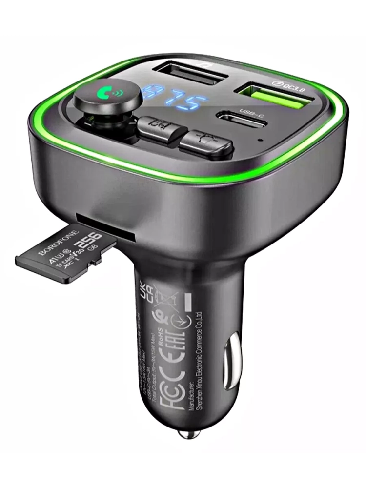 Borofone BC48 — это универсальный автомобильный трансмиттер с быстрой зарядкой, который позволяет Вам наслаждаться качественным звуком и удобством во время поездок. С его помощью Вы сможете превратить любую машину в современный мультимедийный центр. Трансмиттер Borofone BC48 оснащен Bluetooth-адаптером, который позволяет легко и быстро подключаться к Вашему смартфону или другому устройству через Bluetooth. Вы сможете слушать музыку, аудиокниги без проводов и лишних усилий. Кроме того, устройство оснащено двумя USB-портами и портом Type-C. Вы также можете подключить TF-карту или флешку с максимальным объемом в 32 ГБ, чтобы воспроизводить музыку или другие файлы непосредственно с них. Borofone BC48 также оснащен встроенным FM-модулятором, который позволяет передавать звук на частоту FM и принимать его на радио Вашего автомобиля. Вы сможете настроить частоту на своей магнитоле и наслаждаться кристально чистым звуком. Компактный дизайн и прочный корпус делают Borofone BC48 удобным и долговечным аксессуаром для Вашего автомобиля. Он легко устанавливается на прикуриватель и не занимает много места. Благодаря своей универсальности, Borofone BC48 совместим с большинством автомобилей и устройств.