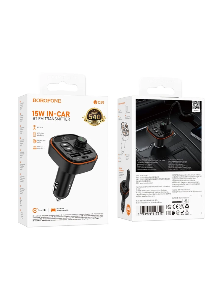 Автомобильный FM-передатчик Borofone BC59 BT предназначен для удобного использования в автомобиле, обеспечивая качественное подключение по Bluetooth и воспроизведение музыки с различных носителей. Это устройство оснащено Bluetooth приемником версии 5.4 с чипом JLJL, что обеспечивает стабильное и быстрое соединение с вашим смартфоном или другими гаджетами.