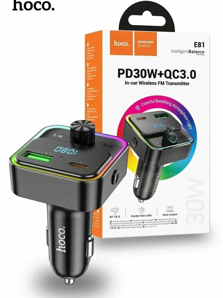 FM-модулятор Hoco E81 - это многофункциональное устройство, которое сочетает в себе удобство использования, стильный дизайн и высокую функциональность.