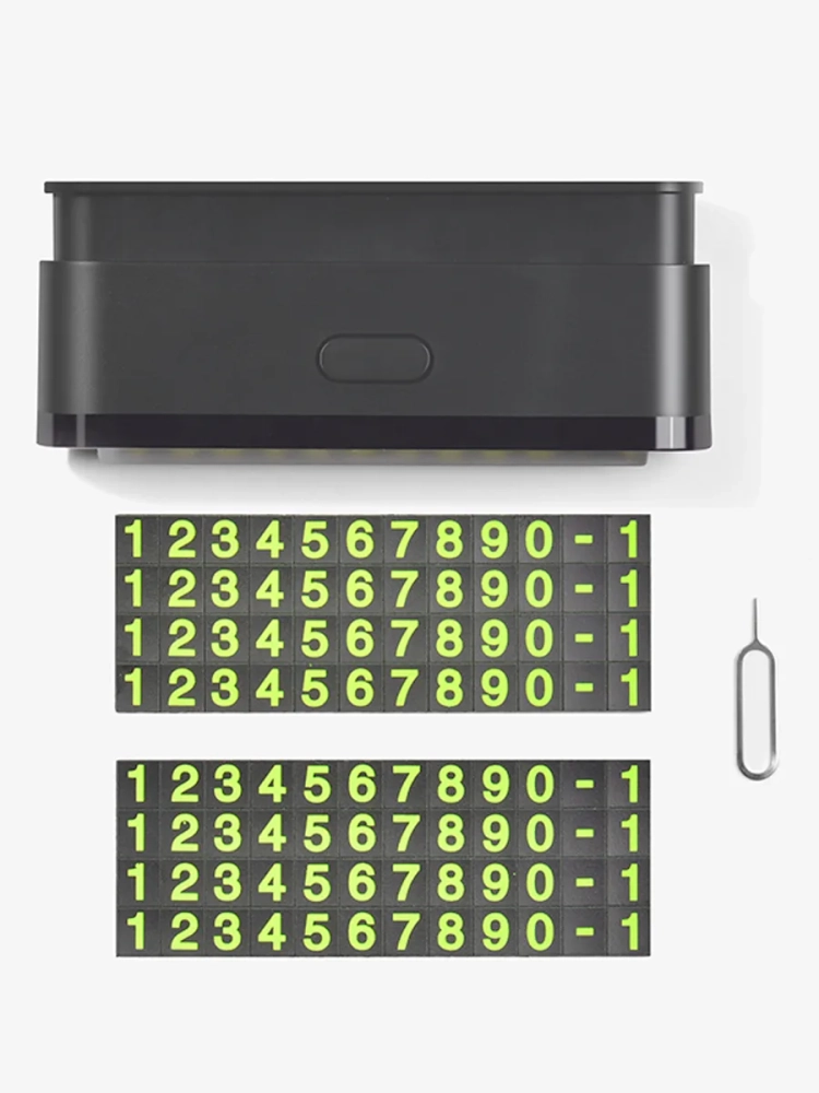 Стильная парковочная автовизитка позволит повысить безопасность авто. Оставив в салоне машины такую табличку, владелец может быть абсолютно спокоен. В случае возникновения непредвиденных ситуаций, другие автомобилисты обязательно свяжутся с вами и оповестят о произошедшем. Если нужно скрыть номер телефона, то необходимо просто нажать на кнопку на автовизитке. Автовизитку легко зафиксировать на торпеду авто с помощью двухстороннего скотча (идёт в комплекте). Также с визиткой идут магнитные цифры (4 комплекта), на них предусмотрено флуоресцентное покрытие, благодаря которому цифры будут видны даже в темное время суток.