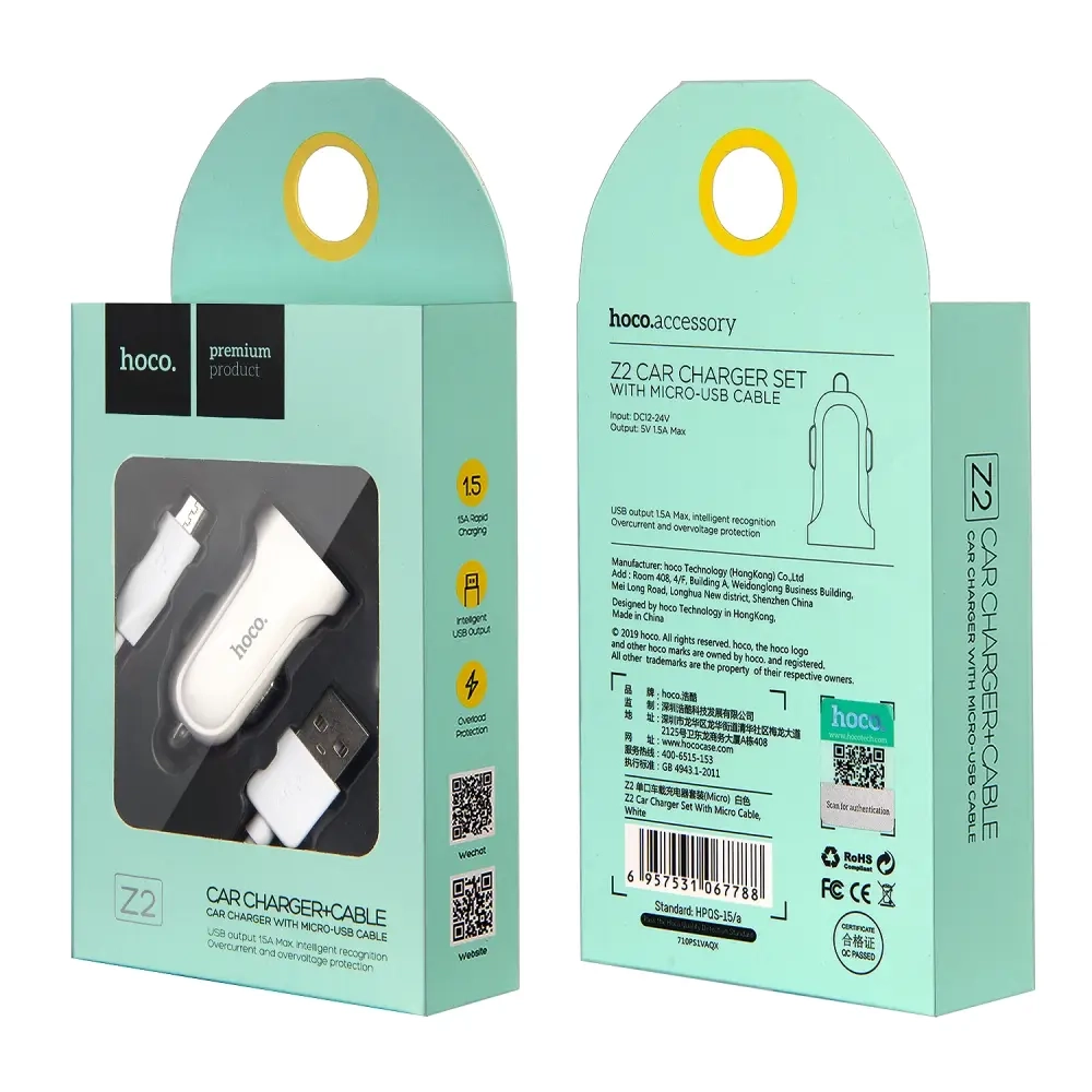* АЗУ Z2 USB на Micro USB 1.5A Hoco белый