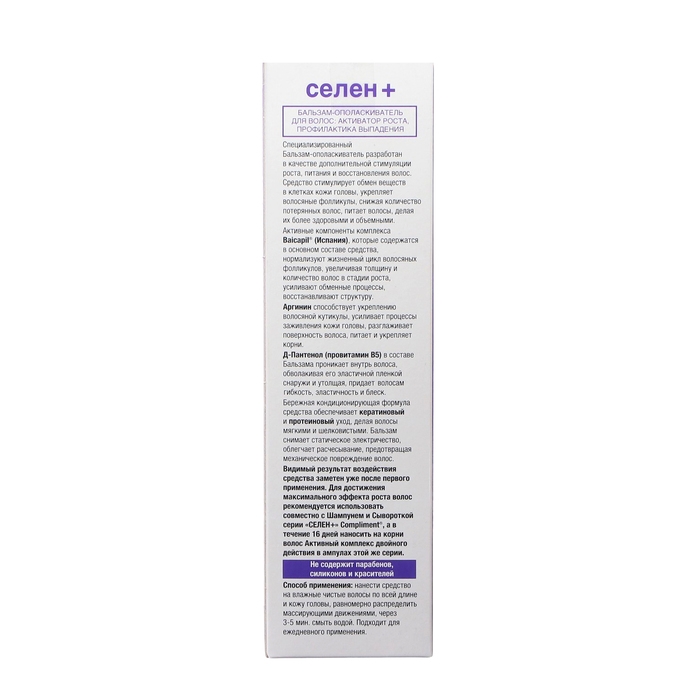 Бальзам-ополаскиватель для волос Compliment «Селен +», активатор роста, профилактика выпадения, 200 мл