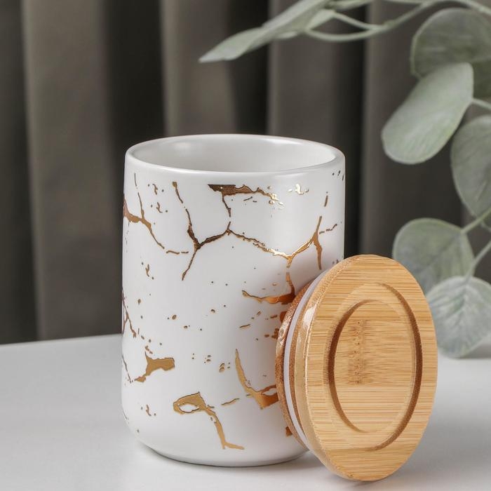 Банка для хранения сыпучих продуктов Gold, 350 мл, 8×12 см, керамическая, цвет белый