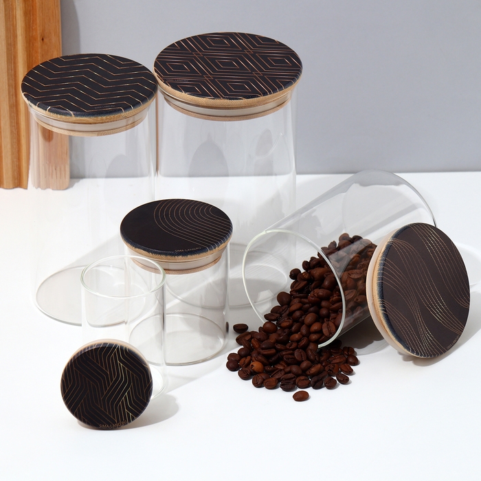 Набор банок стеклянных для сыпучих продуктов «Трио», 3 предмета: 350/550/750 мл, 9,5×10,5/15/19,8 см, цвет чёрный
