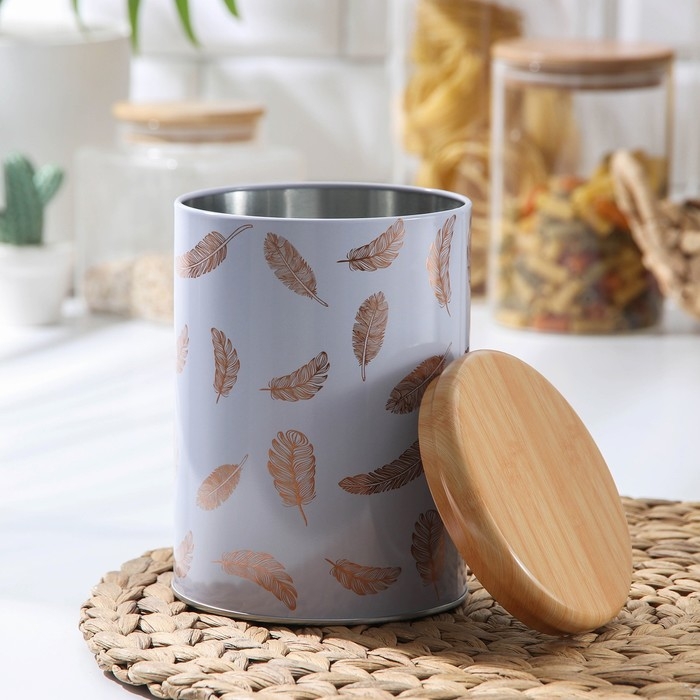 Банка для хранения сыпучих продуктов «Перо», 11×11×15,5 см, цвет лавандовый
