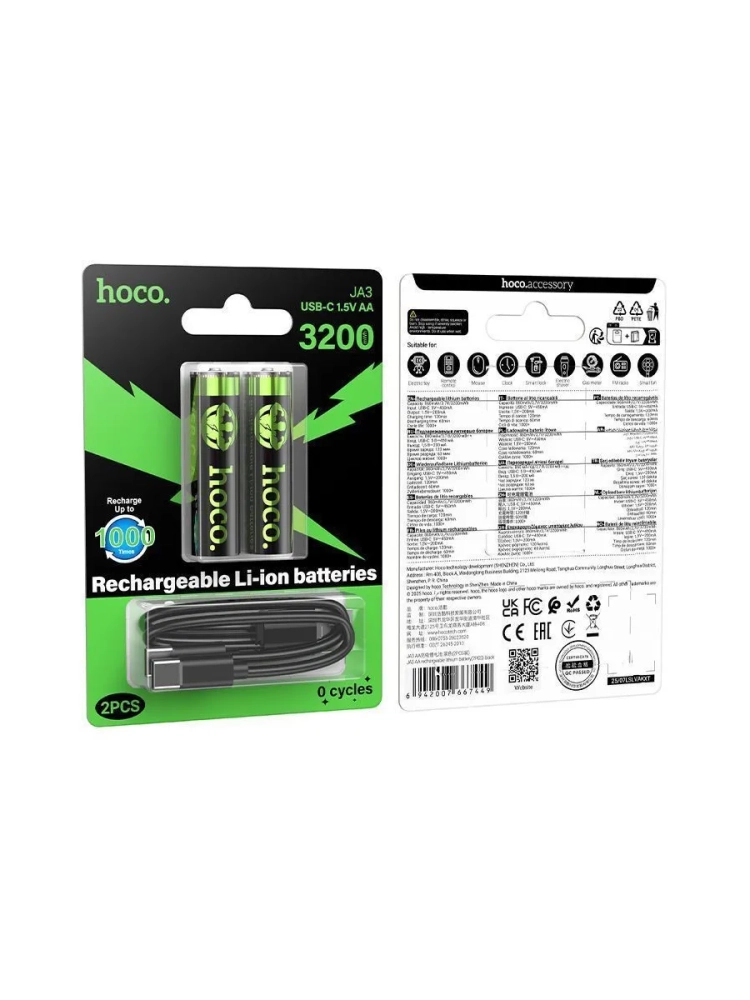 Аккумуляторы Hoco JA3 — это не только выгодное решение, но и забота о природе. Каждый комплект включает две батарейки, которые можно перезаряжать множество раз, что значительно снижает количество отходов. Подарите своим близким удобство и заботу о экологии. Это отличный выбор для игрушек ваших детей.