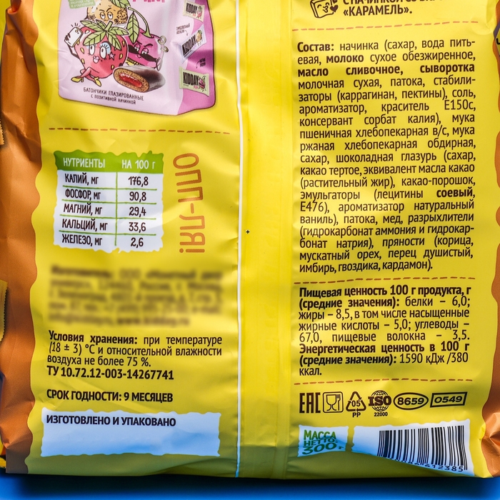 Батончик глазированный "KIDDAY mini", с карамелью и сгущенкой, ассорти,300 г