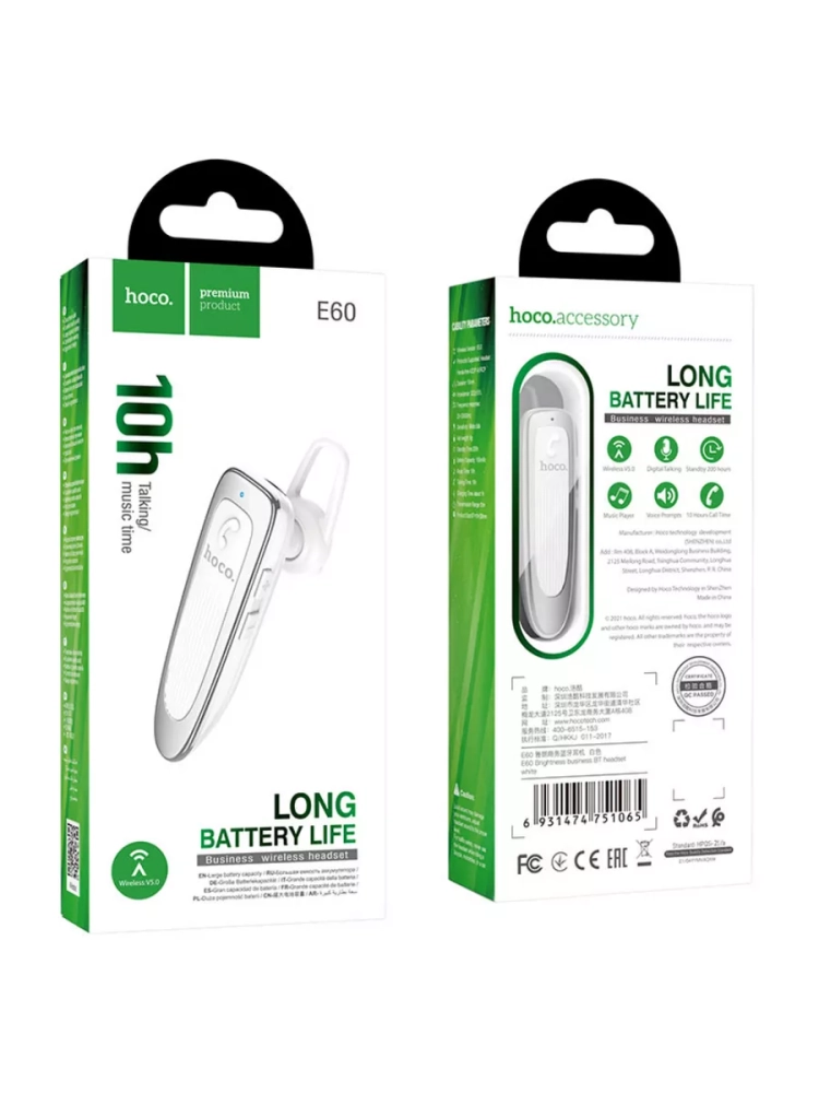 Стильная и легкая беспроводная гарнитура на ухо Hoco E60 Brightness сделает Ваше общение по телефону максимально комфортным и продуктивным. Встроенный микрофон позволяет общаться по телефону, не прибегая к удерживанию смартфона у самого уха, что делает ее идеальной для занятых и активных людей и безопасной для водителей автомобиля. Кроме того, авто bluetooth обеспечивает четкий и чистый звук, благодаря качественным динамикам, что делает ее отличным выбором для прослушивания музыки, просмотра видео и игры в компьютер или планшет. Эргономичный дизайн и маленький вес гарантирует комфортное ношение, а встроенные кнопки управления позволяют легко переключаться между треками, регулировать громкость и отвечать на звонки, не прибегая к использованию смартфона. Батарея обеспечивает длительное время работы, что делает эту гарнитуру идеальным компаньоном для повседневного использования.