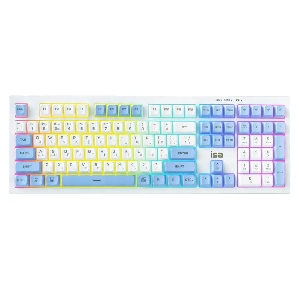 Беспроводная клавиатура ISA KB-10 в классическом белом корпусе предлагает универсальное трёхрежимное подключение через USB-Type-C кабель, Bluetooth и беспроводной адаптер 2.4 ГГц для максимальной гибкости использования. Устройство оснащено качественными мембранными клавишами, которые обеспечивают бесшумную работу, что делает её идеальной для офиса, дома и игровых сессий. Настраиваемая RGB-подсветка позволяет персонализировать внешний вид клавиатуры, а двухцветное исполнение кнопок в белом и синем вариантах добавляет стиля и удобства визуального ориентирования. Эргономичный дизайн и интеллектуальное соединение обеспечивают комфортную и стабильную работу в любых условиях.