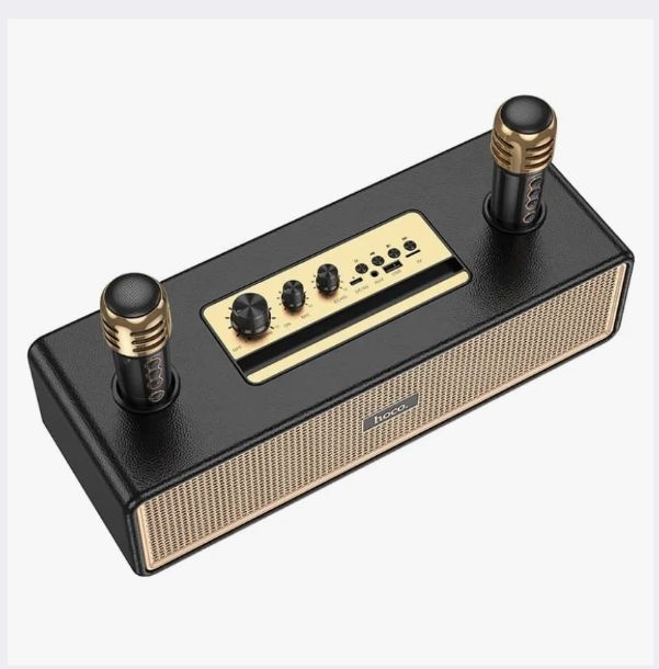Караоке колонка с 2 микрофонами. Мощная колонка от бренда HOCO , с двумя микрофонами, мощные басы и звук, можно использовать как караоке колонку, ручка и ремень для переноски. Отличный подарок себе и друзьям. Колонка выполнены из качественного пластика, решётки динамиков из металла. Емкость аккумулятора 4500 mAh. Время работы от аккумулятора, до4 ч. Поддержка Bluetooth, TF-карты, USB-диска, AUX и других режимов. Оснащен беспроводным микрофоном * 2. Размер динамика: 66 мм * 2, мощность: 10 Вт * 2. Поддержка Bluetooth, TF-карты, USB-диска, AUX и других режимов