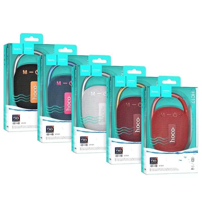 Hoco HC17 яркая, дерзкая, бескомпромиссная портативная колонка. Отличный выбор для тех, кто ищет качественный звук и удобство использования за разумную цену. Она поддерживает Bluetooth 5.3, что обеспечивает стабильное соединение и высокое качество звука. Прекрасный дизайн в виде карабина для крепления на лямке рюкзака, велосипеде или самокате. Время работы в режиме музыки/звонков – 2 часа, а в режиме ожидания - до 60-ти часов. Вес колонки - всего 244 грамма, поэтому ее легко взять с собой в любую поездку или на прогулку. Корпус надежно защищен от пыли и влаги, кнопки прорезинены для лучшего тактильного эффекта, а разъемы надежно закрыты резиновой заглушкой. Колонка снабжена FM приемником, разъемом для microSD карт и 3.5 мм AUX входом. Аккумулятор 500mAh, 2 часа звонков и музыки, поддержка BT, FM, TF, USB, TWS режимов воспроизведения. Радиус действия 10 метров