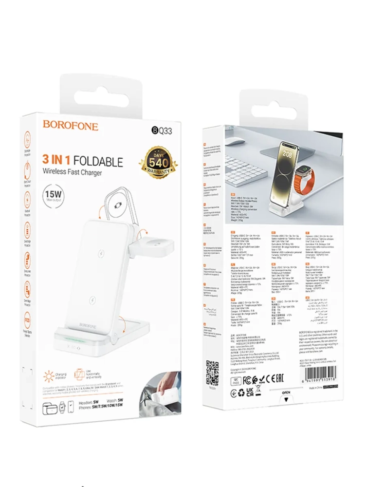 Ищете идеальное решение для зарядки ваших устройств? Беспроводная зарядка BOROFONE BQ33 — это универсальный аксессуар, который поддерживает зарядку для iPhone и Android. С ее помощью вы сможете быстро и удобно подзаряжать не только смартфон, но и наушники, а также часы. Это устройство станет незаменимым помощником в вашем повседневном использовании.