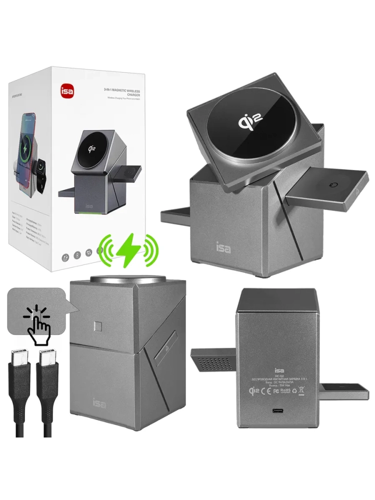 Беспроводная зарядка магнитная Qi2 15W 3в1 MC-Qi2 ISA