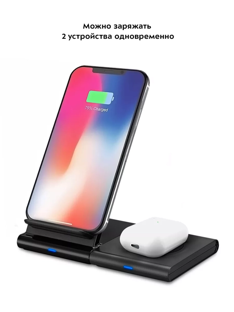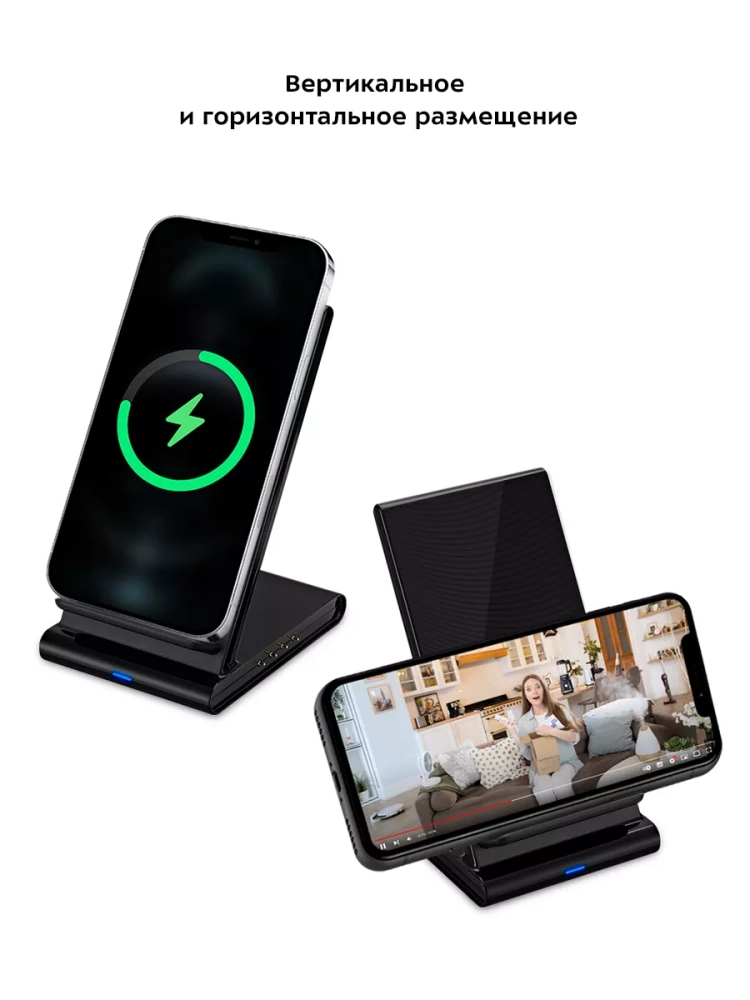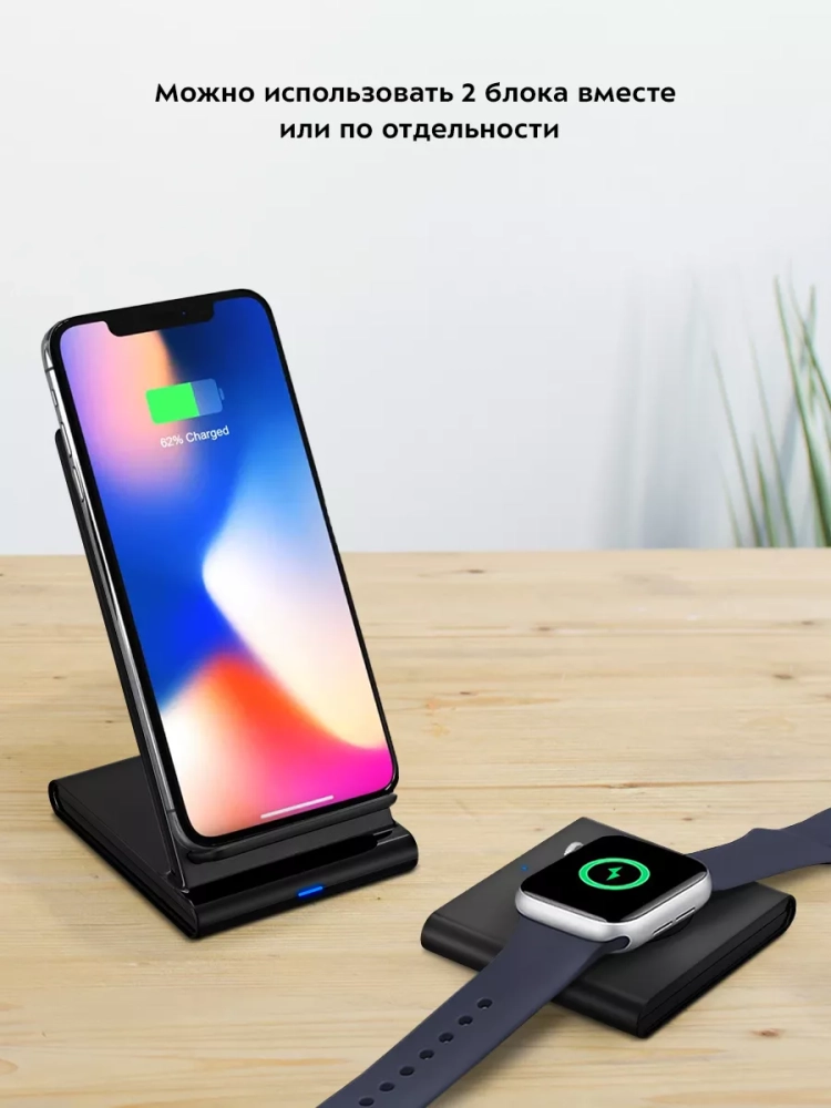 У одного из блоков есть подставка для телефона, поэтому вы можете поставить телефон на зарядку и продолжать им пользоваться. Особенно удобно, что на подставке вы можете разместить телефон в любом положении: вертикально или горизонтально.