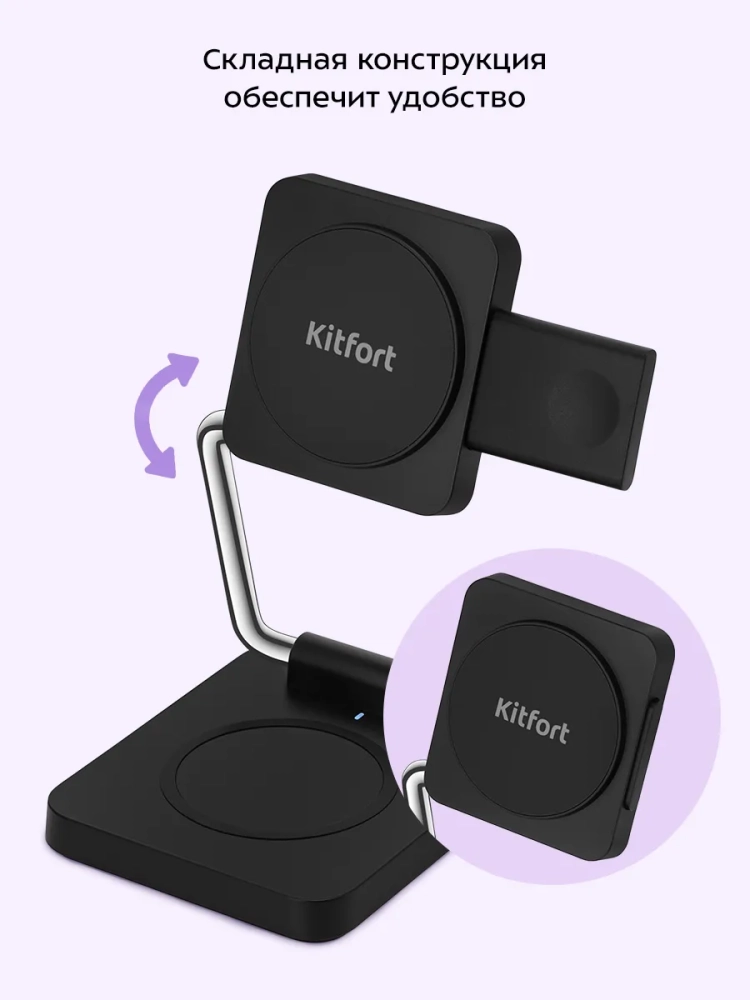 Эта зарядная станция — идеальный выбор для тех, кто ценит время и удобство. Она обеспечивает надежную и быструю зарядку беспроводных устройств, а также совместима с различными моделями телефонов и наушников. Станция КТ-3745 от Китфорт — это надежный помощник в повседневной жизни, который гарантирует, что ваши устройства всегда будут готовы к работе.