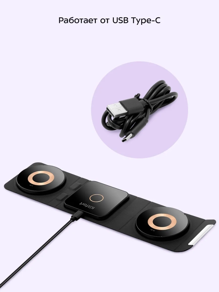Станция поддерживает зарядку нескольких устройств одновременно, включая телефоны и умные часы. Это делает её идеальным решением для пользователей, которые ценят время и удобство. Короткий кабель в комплекте обеспечивает аккуратное подключение, не создавая беспорядка на рабочем месте. Блок питания, входящий в комплект, гарантирует стабильную работу станции.