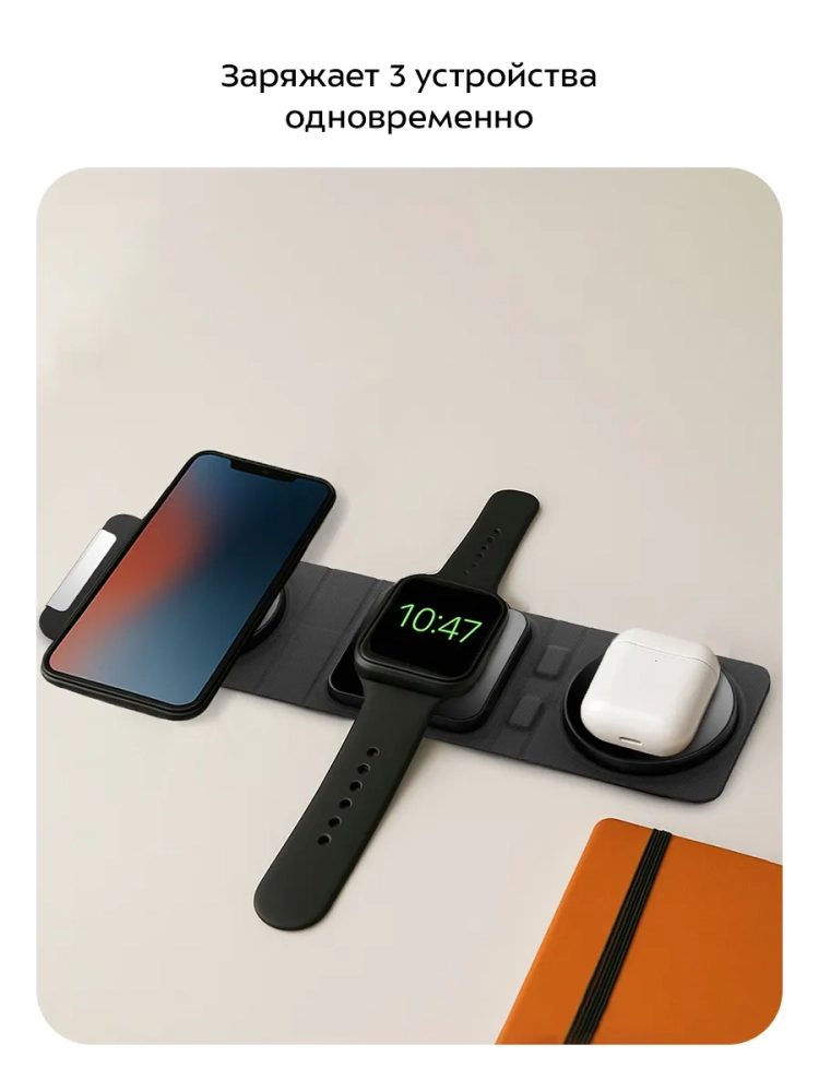 Эта зарядная станция — идеальный гаджет для тех, кто ценит качество и функциональность. Она совместима с различными устройствами, включая айфоны и другие смартфоны, что делает её универсальным решением для зарядки. Время зарядки сокращается до минимума, а беспроводной формат позволяет избежать путаницы с проводами. Станция станет незаменимым помощником в повседневной жизни, обеспечивая быструю и безопасную зарядку устройств.