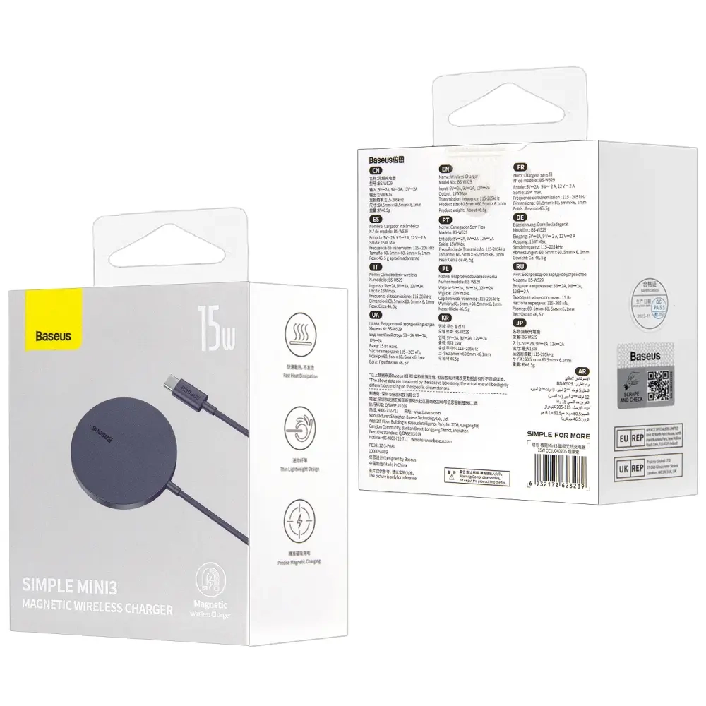 Беспроводное зарядное устройство 15W Baseus темно-фиолетовое CCJJ040205