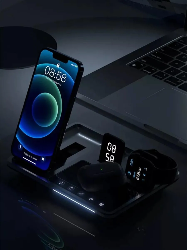 Беспроводное зарядное устройство 4in1 R11 - это стильное и функциональное решение для одновременной зарядки нескольких устройств. Оснащенное тремя разъемами, оно позволяет заряжать смартфоны, наушники и другие гаджеты с поддержкой беспроводной зарядки. Технология Power Delivery 3.0 и Super Fast Charging обеспечивает быструю и эффективную подзарядку, экономя ваше время. Безопасная зарядка с защитой от перегрева и короткого замыкания гарантирует надежную работу устройства. Подсветка добавляет удобства, позволяя легко найти зарядное устройство в темноте. Компактный и эргономичный дизайн R11 идеально впишется в любой интерьер, а его универсальность сделает его незаменимым помощником в повседневной жизни.