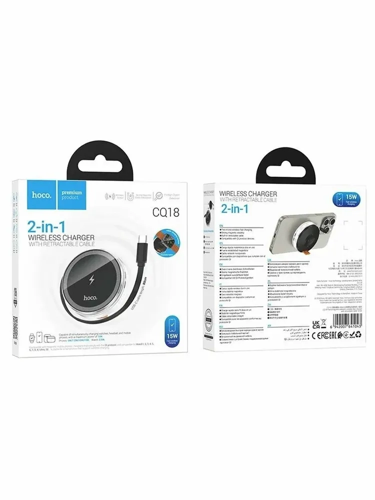 2. **Выход**: Оно подходит для зарядки различных устройств. Для телефонов предусмотрено несколько режимов мощности: 5 Вт, 7,5 Вт, 10 Вт и 15 Вт. Для MagSafe максимальная мощность составляет 7,5 Вт. Для часов, включая iWatch всех моделей (1-9, SE/SE2, Ultra/Ultra2), мощность составляет 2,5 Вт.