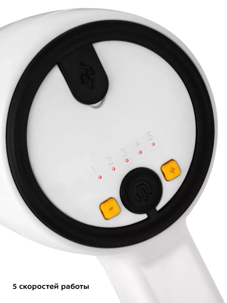 У миксера 5 скоростей работы, благодаря чему вы сможете выбрать подходящую скорость для взбивания или смешивания ингредиентов. Кнопки настройки скорости расположены на корпусе со стороны ручки миксера, поэтому переключить скорость во время работы будет легко и удобно.