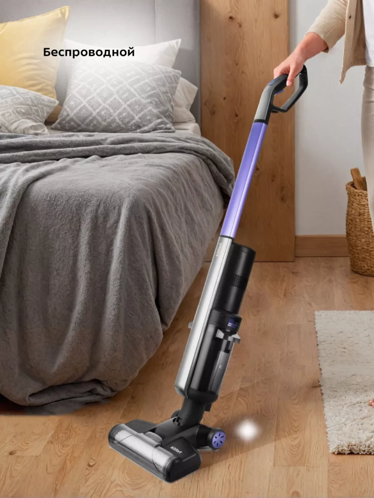 Беспроводной вертикальный моющий пылесос от Kitfort КТ-598 очень удобен при локальной уборке. Он компактен, всегда под рукой и готов к работе. Этот вертикальный пылесос не только пылесосит, но и моет пол, а провода не будут мешаться под ногами, потому что пылесос работает от аккумулятора.