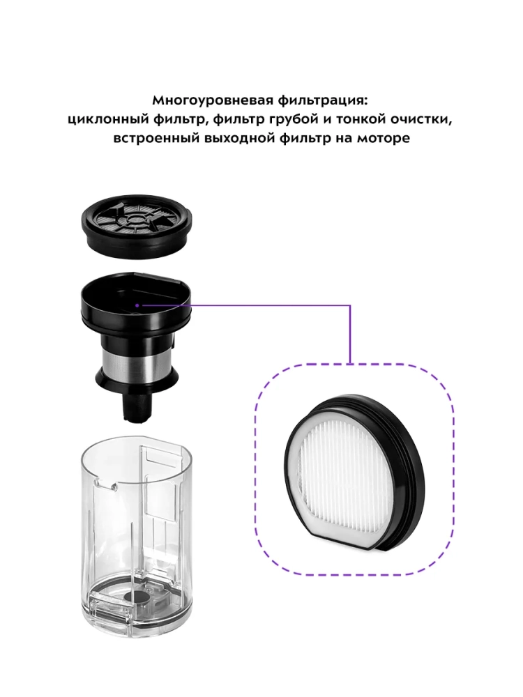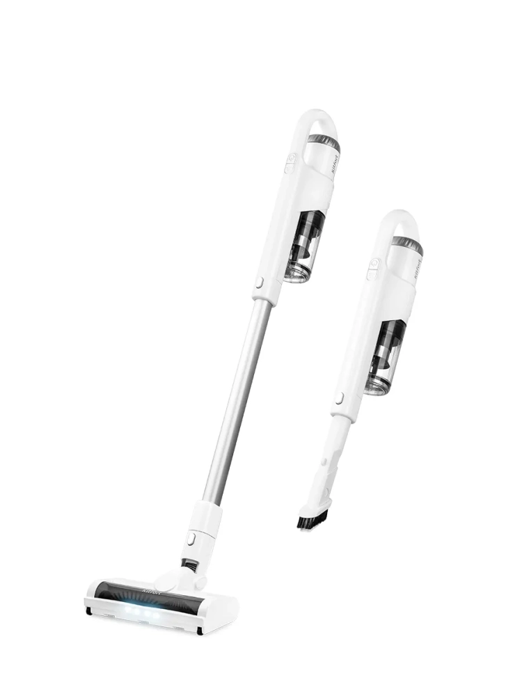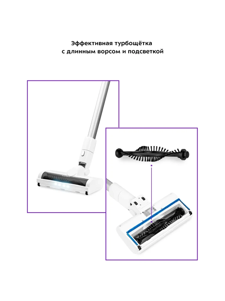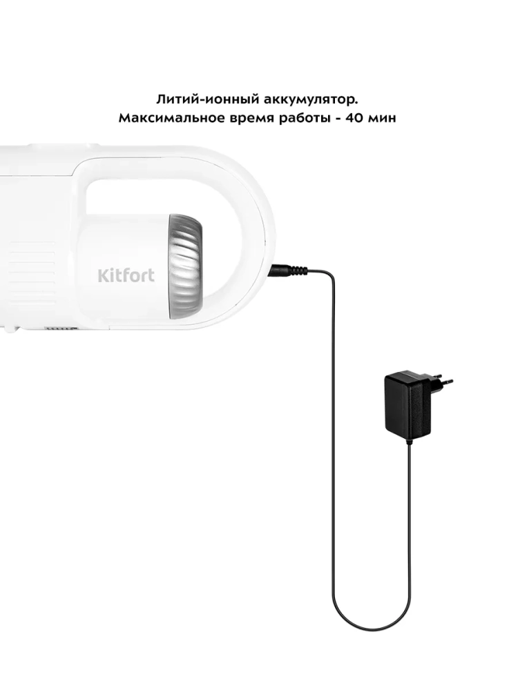 Беспроводной вертикальный пылесос Kitfort КТ-5154 очень удобен при локальной и генеральной уборке. Его конструкция позволяет легко проникать в самые труднодоступные уголки квартиры. При этом не нужно передвигать громоздкий корпус аппарата и управляться с непослушным шлангом. Благодаря работе от аккумулятора не нужно включать вилку в розетку, провода не мешают под ногами. Поэтому пылесос имеет неограниченный радиус действия: от любого уголка квартиры до машины или беседки в саду. Пылесос оснащен маневренной напольной щеткой, которая вращается в двух плоскостях. Встроенный выходной фильтр на мотор сводит к минимуму выброс пыли обратно в воздух. При хранении он занимает мало места, а во время работы пылесос благодаря своей маневренности может легко вписаться в узкий коридор или комнату, заполненную различными предметами. Для владельцев небольших квартир, которые сталкиваются с проблемой, где же хранить пылесос, приобретение этой модели будет оптимальным вариантом. Конструкция «2 в 1» предусматривает наличие ручного пылесоса, который удобно использовать отдельно. Ручным пылесосом можно пропылесосить углы и плинтусы, обивку мебели, пыль со шкафов (куда обычным пылесосом очень трудно дотянуться из-за ограниченной длины шланга), шкафчики на кухне или в гостиной, книжные полки, коврики в автомобиле или багажник. Пылесос комплектуется турбощеткой, которая качественно очищает гладкие поверхности и ковровые покрытия с коротким ворсом. Также к пылесосу прилагается насадка «2 в 1» для труднодоступных мест и кронштейн для настенного хранения устройства. Светодиодная подсветка на напольной щетке способствует более качественной уборке. Пылесос оборудован современным циклонным фильтром, обеспечивающим хорошую очистку, при этом сила всасывания не зависит от наполненности пылесборника. Контейнер пылесборника легко снимается и чистится, а также у него есть дополнительная крышка для быстрого сброса мусора без вынимания фильтров.