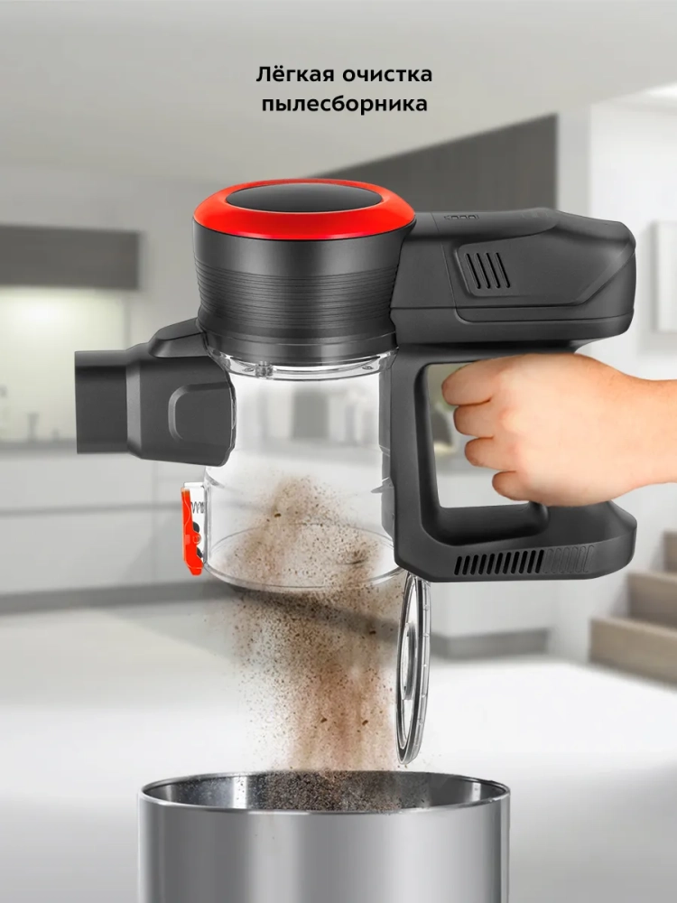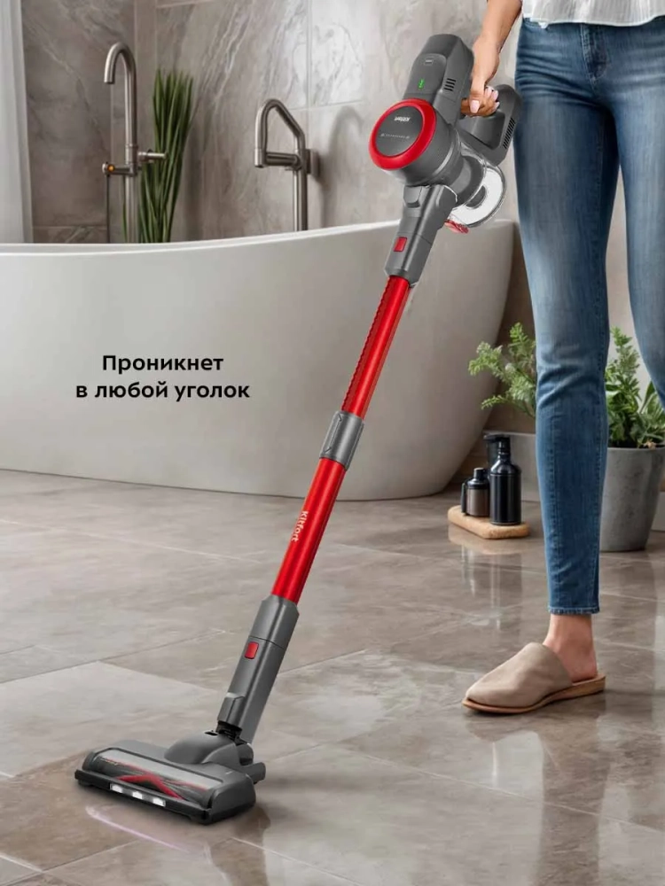 Беспроводной вертикальный пылесос Kitfort КТ-5175 очень удобен при локальной и генеральной уборке. Он компактен, всегда под рукой и готов к работе. При отсоединении телескопической трубки и установке насадки он превращается в ручной пылесос.