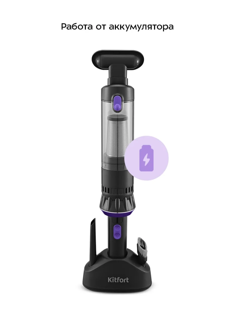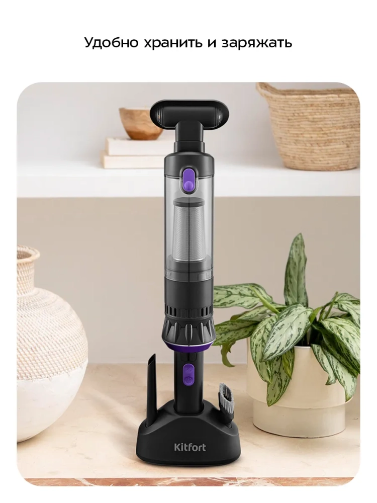 Беспроводной ручной пылесос Kitfort КТ-5293 — это портативное и компактное устройство, которое легко справится с пылью и мусором. Благодаря работе от аккумулятора пылесос имеет неограниченный радиус действия: от любого уголка квартиры до машины или беседки в саду. Небольшие габариты и малый вес пылесоса делают процесс уборки простым и удобным.