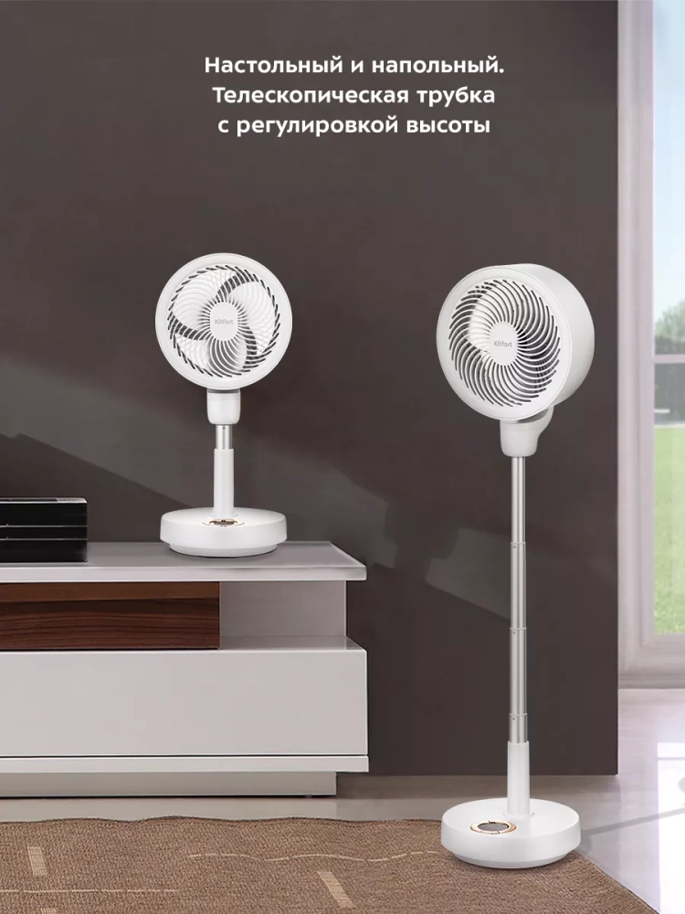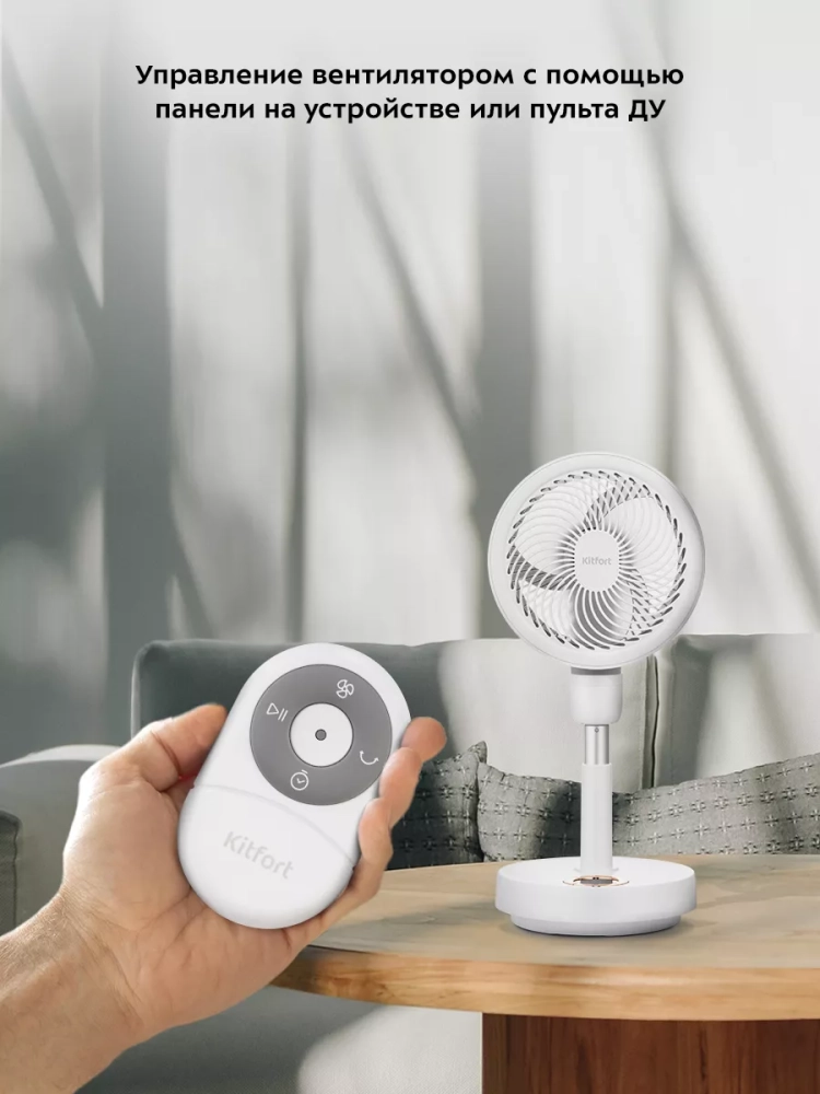 Беспроводной вентилятор Китфорт КТ-423 — это незаменимый помощник в жарком и душном помещении. Прибор создает комфортный прохладный поток воздуха, избавляет от духоты, не позволяет воздуху застаиваться.