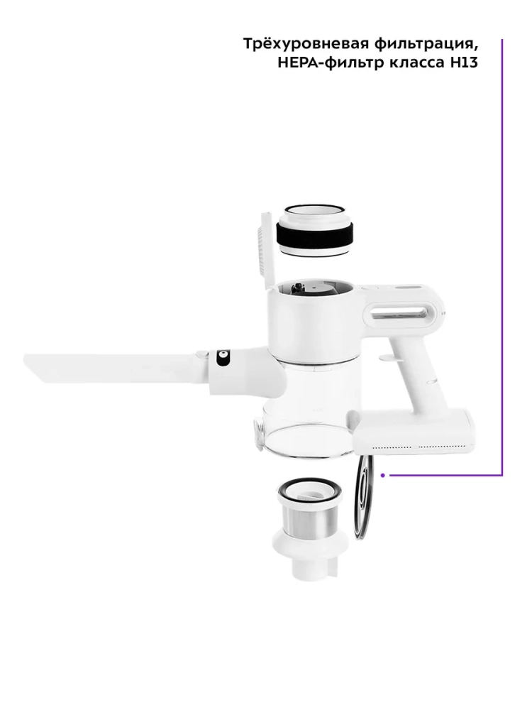 Беспроводной вертикальный пылесос Kitfort КТ-5117 очень удобен при локальной и генеральной уборке. Он компактен, всегда под рукой и готов к работе. При отсоединении удлинительной трубки и установке насадки он превращается в ручной пылесос. Благодаря работе от аккумулятора не нужно включать вилку в розетку, провода не мешают под ногами. Пылесос имеет неограниченный радиус действия: от любого уголка квартиры до машины или беседки в саду. Пылесос комплектуется турбощеткой, которая качественно очищает гладкие поверхности и ковровые покрытия с коротким ворсом. Также к пылесосу прилагаются насадка 2 в 1 с выдвигающейся ворсовой частью для труднодоступных мест, кронштейн для настенного хранения устройства, узкая насадка, а также дополнительный держатель насадок на удлинительной трубке. Светодиодная подсветка на напольной щетке способствует более качественной уборке. Пылесос оборудован современным циклонным фильтром, при этом сила всасывания не зависит от наполненности пылесборника.