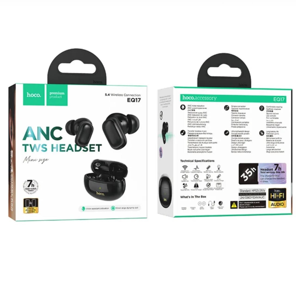 Представляем Вам новинку беспроводных наушников с микрофоном Hoco EQ17. Это идеальный выбор для тех, кто ценит качество звука и удобство использования. Эти черные наушники оснащены функцией шумоподавления, что обеспечивает чистое и насыщенное звучание, самостоятельно фильтруя внешние звуки и позволяя вам сосредоточиться на музыке или беседе. С их помощью вы сможете наслаждаться любимыми мелодиями в любом месте, будь то шумный офис, прогулка по городу или поездка в транспорте. Эргономичный дизайн и легкий вес делают наушники комфортными для длительного использования. Они отлично подходят как для прослушивания музыки, так и для общения, благодаря качественному встроенному микрофону, который гарантирует четкую передачу голоса. Беспроводное соединение обеспечивает большую свободу движений, позволяя вам не беспокоиться о запутанных проводах. Просто подключите наушники к своему устройству и наслаждайтесь качественным звуком без ограничений. Hoco EQ17 также поддерживают длительное время работы от одного заряда, что делает их идеальными спутниками для поездок и путешествий. Сочетание стильного дизайна и высоких технологий делает эти наушники универсальным аксессуаром для современного пользователя. Погрузитесь в мир музыки с Hoco EQ17 и откройте для себя новый уровень звуковых ощущений. EQ17 Praise настоящая беспроводная гарнитура BT с функцией шумоподавления ANC