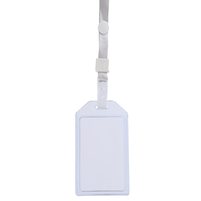 Бейдж вертикальный в комплекте с лентой. Материал бейджа - ПВХ, цвет - прозрачный. Имеет размер вставки 54х90 мм. Лента изготовлена из полиэстера и ее ширина составляет 10 мм. Бейдж подходит для ношения именных карточек и пропусков.