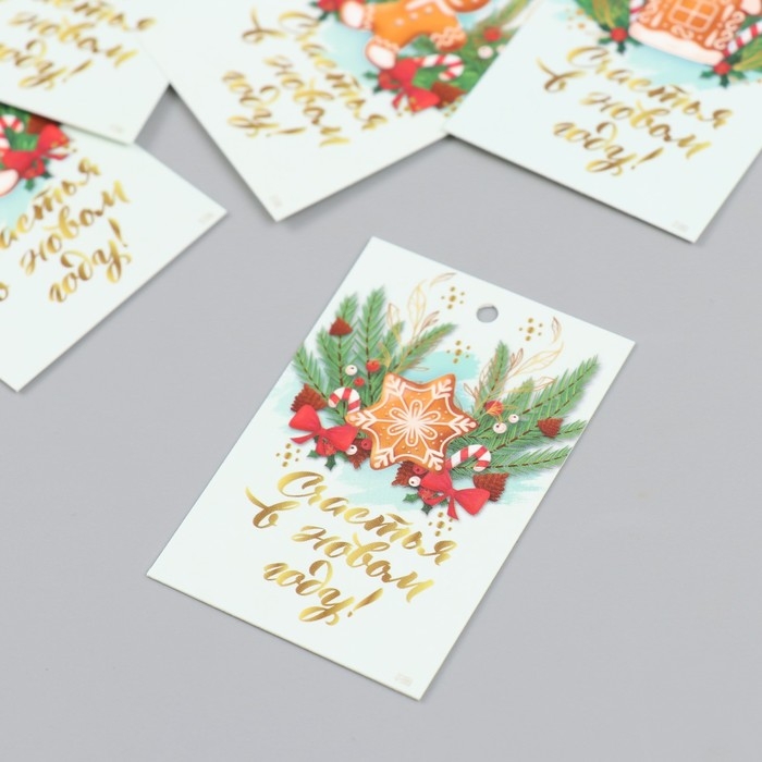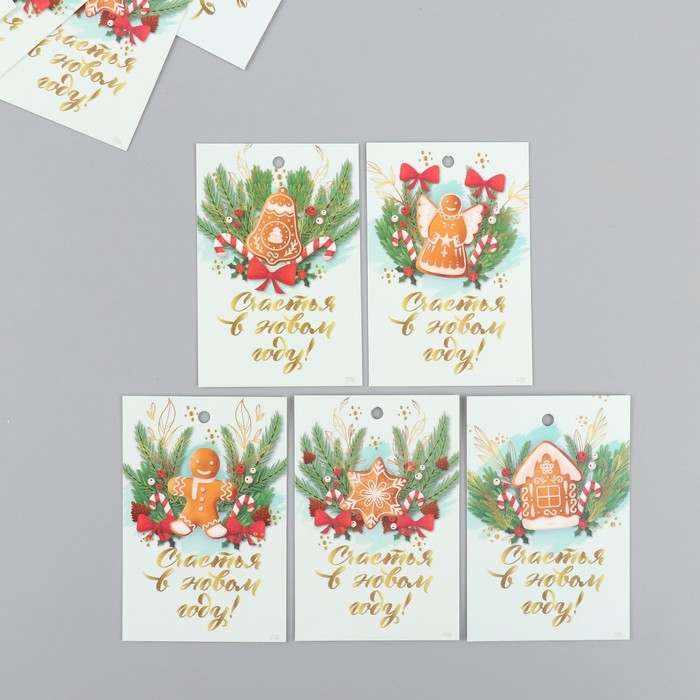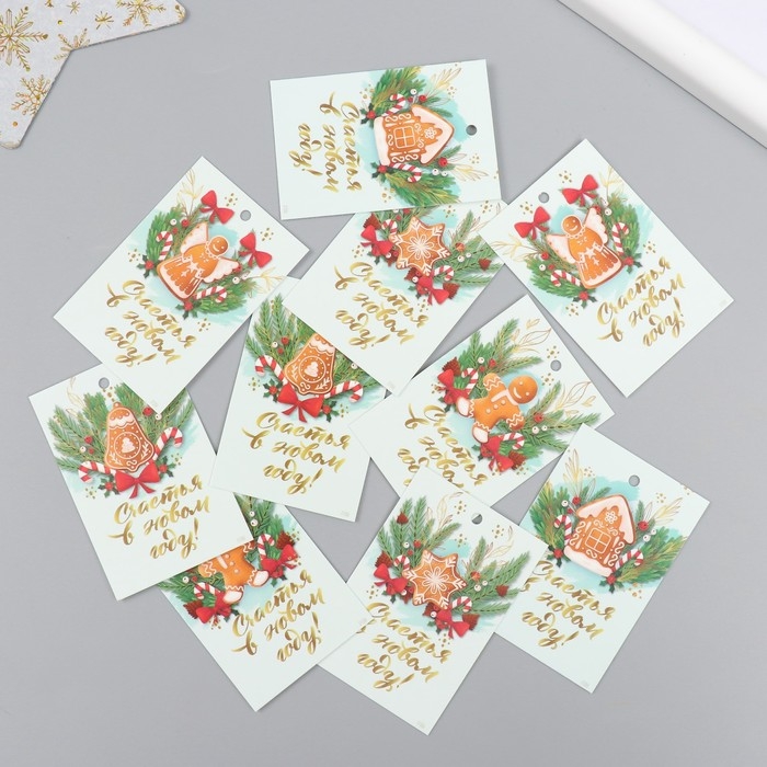 Бирка картон "Счастья в Новом году" набор 10 шт (5 видов) 4х6 см