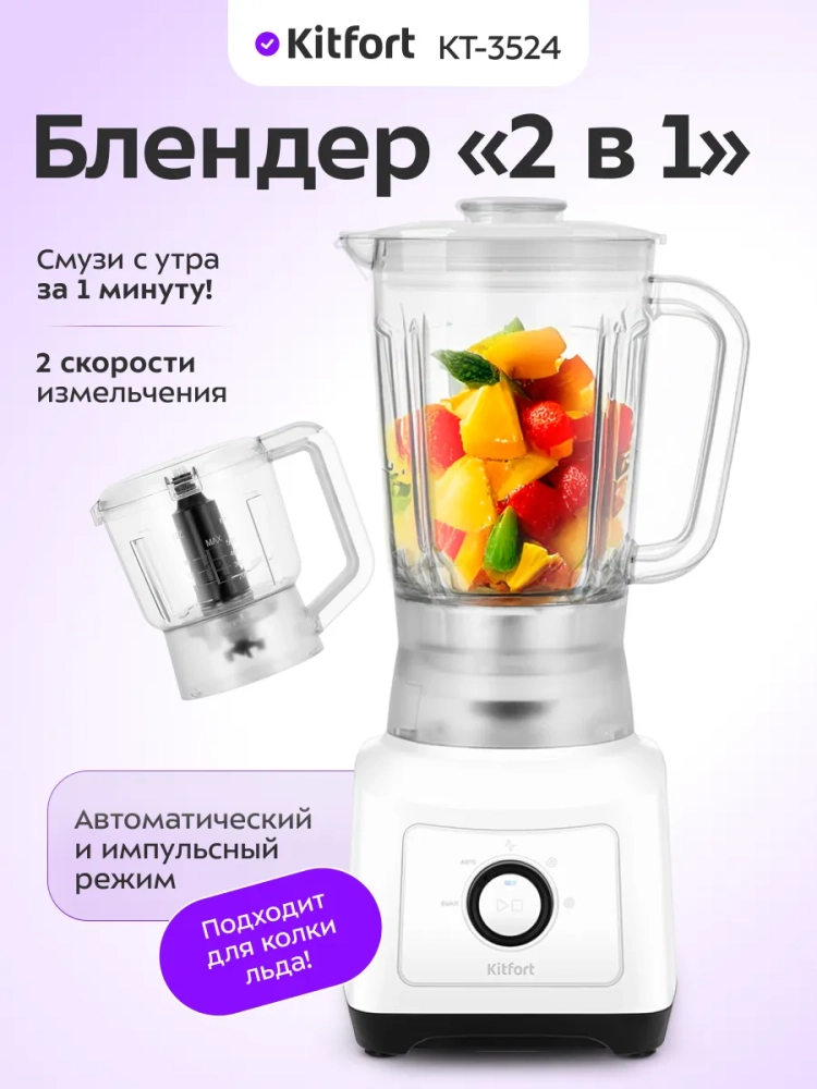 Блендер «2 в 1» Kitfort КТ-3524 выполняет функции не только блендера, но и измельчителя.