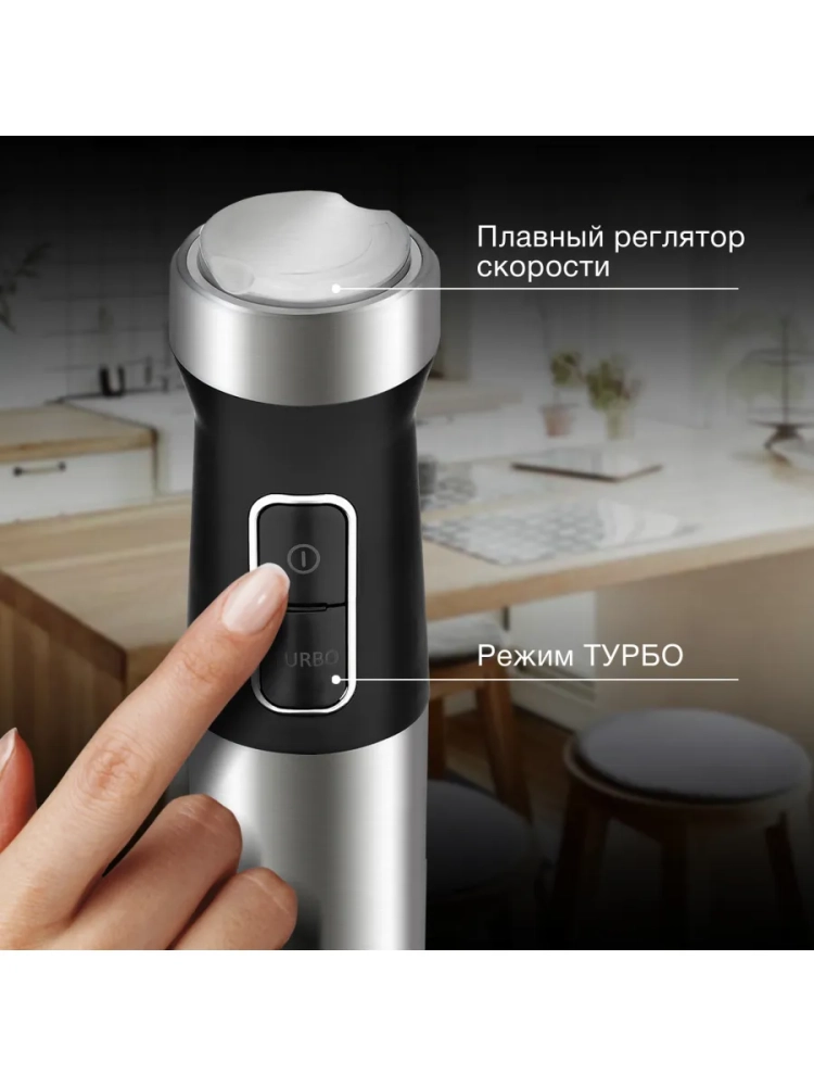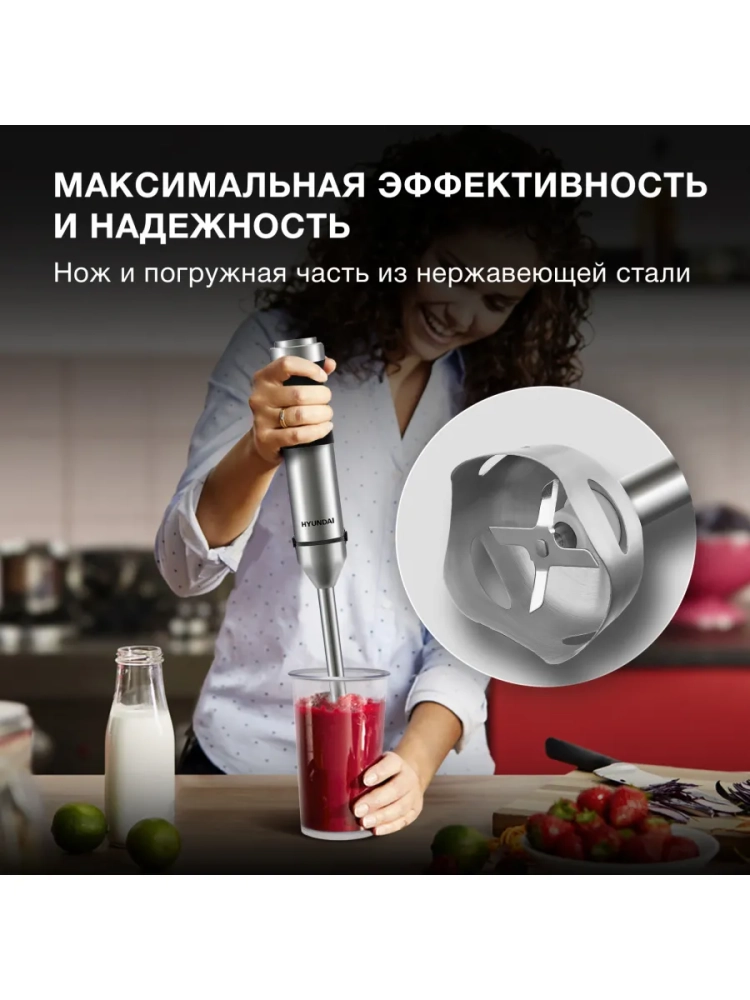 Блендер погружной Hyundai HYB-H5231 черный, мощность 1200Вт, материал погружной части нержавеющая сталь.объём измельчителя = 500 мл; объём мерного стакана = 800 мл.плавная регулировка скорости; низкий уровень шума; набор 3в1; эргономичный дизайн; покрытие soft touch