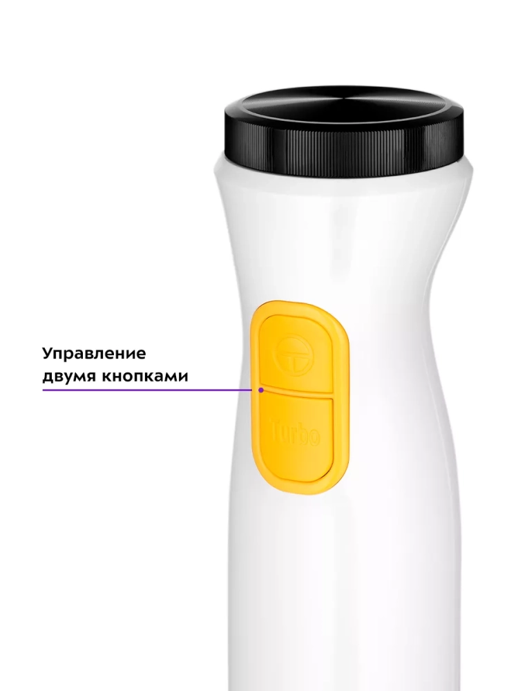 Погружной блендер имеет удобное и простое управление. Блендер оснащен двумя кнопками для выбора скорости.