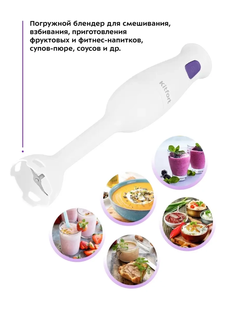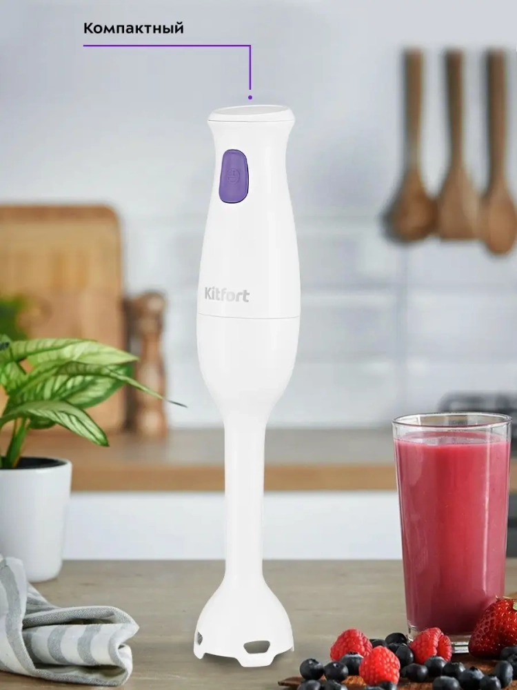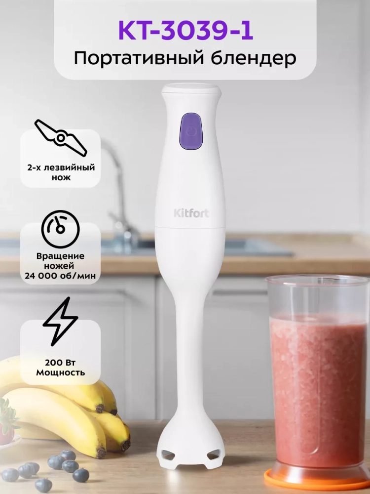 Погружной блендер Kitfort КТ-3039 предназначен для смешивания, взбивания, гомогенизации, приготовления фруктовых и фитнес-напитков, супов-пюре, соусов, муссов, молочных коктейлей, детского питания, а также для замеса жидкого теста. У блендера одна скорость работы и мощный двигатель, рассчитанный на длительный срок эксплуатации. Нож блендера выполнен из нержавеющей стали, что обеспечивает долгий срок службы. Насадка-блендер не снимается с моторного блока. Благодаря компактным размерам погружной блендер KT-3039 не займет много места на вашей кухне. Устройство очень удобно в использовании - достаточно погрузить насадку-блендер в емкость с ингредиентами и нажать на кнопку скорости. Блендер поможет смешать ингредиенты как для маленькой кружки смузи, так и для большой кастрюли крем-супа.