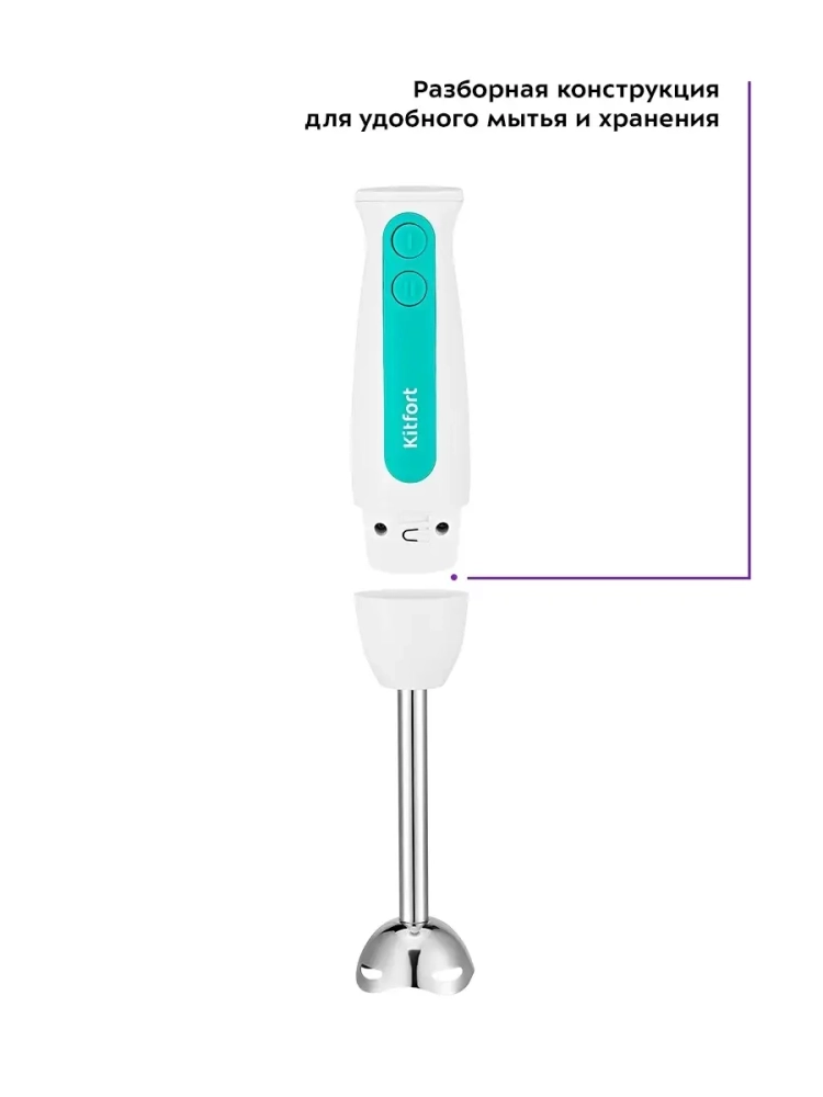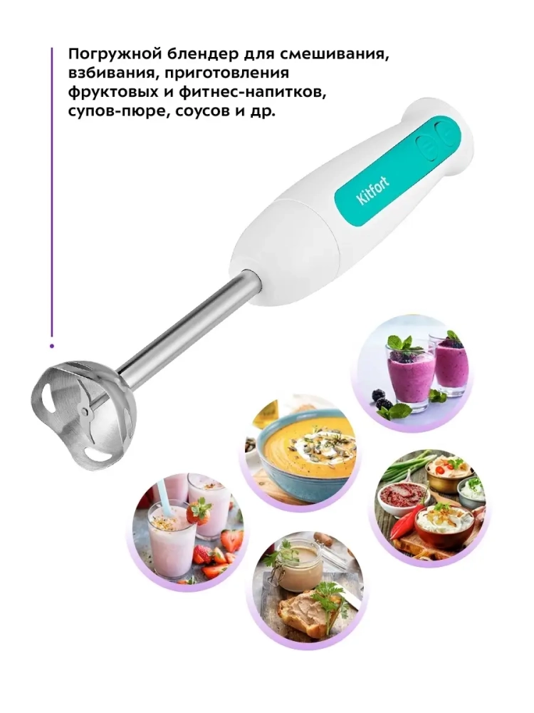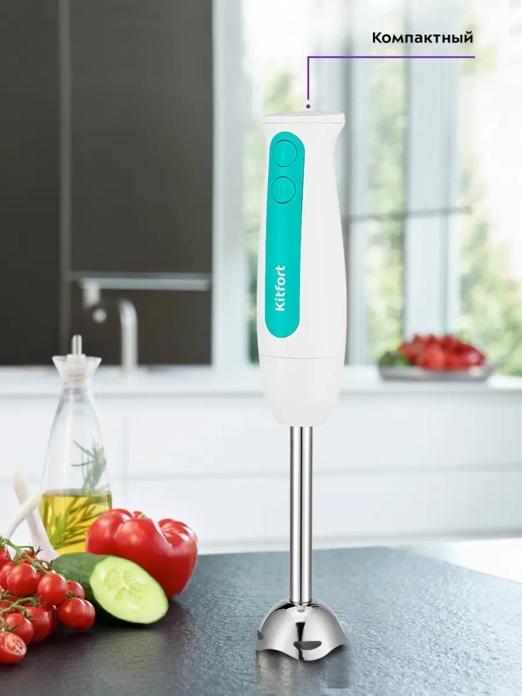 Погружной блендер Kitfort КТ-3051 предназначен для смешивания, взбивания, гомогенизации, приготовления фруктовых и фитнес-напитков, супов-пюре, соусов, муссов, молочных коктейлей, детского питания, а также для замеса жидкого теста. Блендер оснащен двумя скоростями работы и мощным двигателем, рассчитанным на длительный срок эксплуатации. Нож блендера выполнен из нержавеющей стали, что обеспечивает долгий срок службы. Насадка-блендер легко снимается с моторного блока, поэтому уход за устройством не составит труда. Благодаря компактным размерам погружной блендер KT-3051 не займет много места на вашей кухне. Устройство очень удобно в использовании - достаточно погрузить насадку-блендер в емкость с ингредиентами и нажать на нужную кнопку скорости. Блендер поможет смешать ингредиенты как для маленькой кружки смузи, так и для большой кастрюли крем-супа.