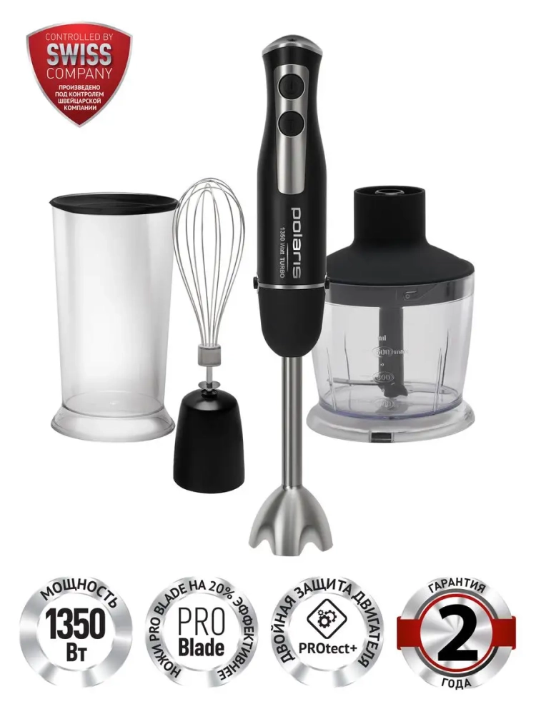 Этот блендер погружной со стаканом и венчиком станет дополнением к вашей бытовой технике Polaris.