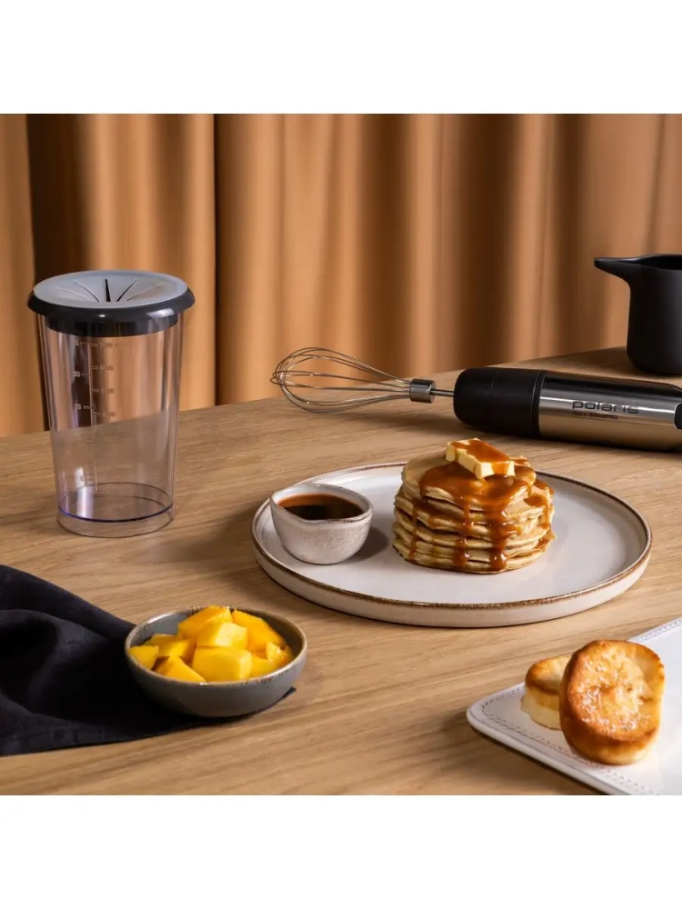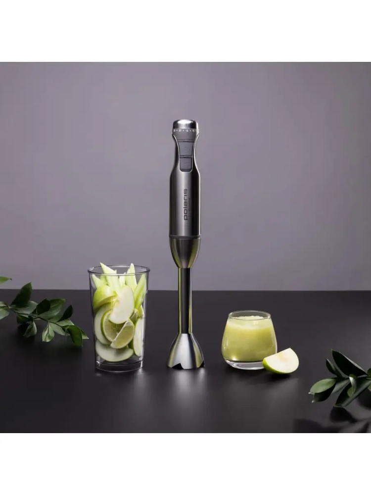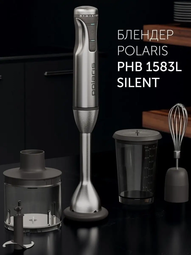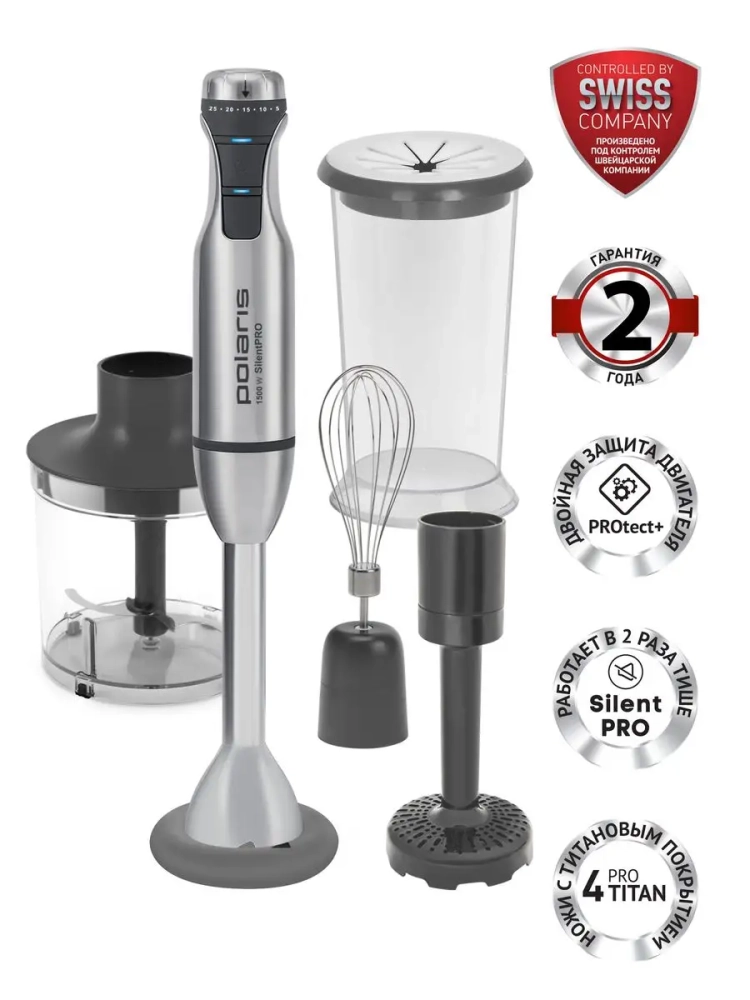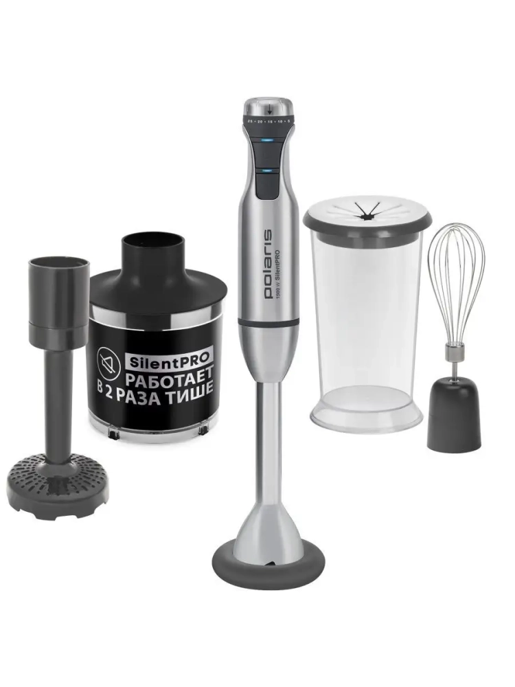 Погружной блендер Polaris PHB 1583L Silent - компактный и многофункциональный прибор, который позволит решить даже сложные кулинарные задачи без особого шума. Работает в 2 раза тише в сравнении с блендерами Polaris старого поколения благодаря технологии SilentPRO. Выделяется высокой мощностью 1500 Вт и комплектацией 4 в 1: блендер, измельчитель, миксер и насадка для пюре. Также в наборе вместительный мерный стакан 0,7 л с защитной крышкой от брызг, прорезиненная подставка и чаша измельчителя объемом 0,5 л. 4-лепестковый нож блендера 4 PRO TITAN с титановым покрытием сохранит остроту и прочность на долгие годы. Для эффективной работы предусмотрено 25 скоростей с плавной регулировкой и режим Турбо, которые помогут добиться необходимой консистенции. Для защиты двигателя от перегрузки и перегрева предусмотрена технология PROtect+. Она продлевает срок службы двигателя и предотвращает его выход из строя. Блендером удобно пользоваться, он легко моется и не впитывает запахи. Гарантия 2 года.