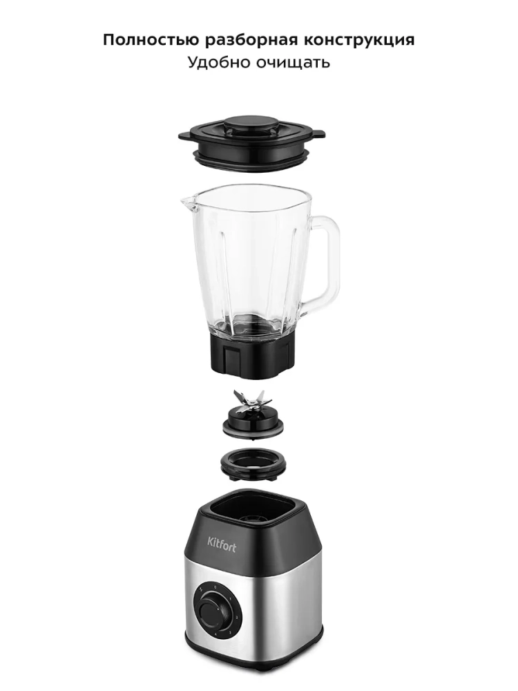 Блендер оснащен надежным двигателем мощностью 1250 Вт и ножами из нержавеющей стали, что обеспечивает долгий срок службы.
