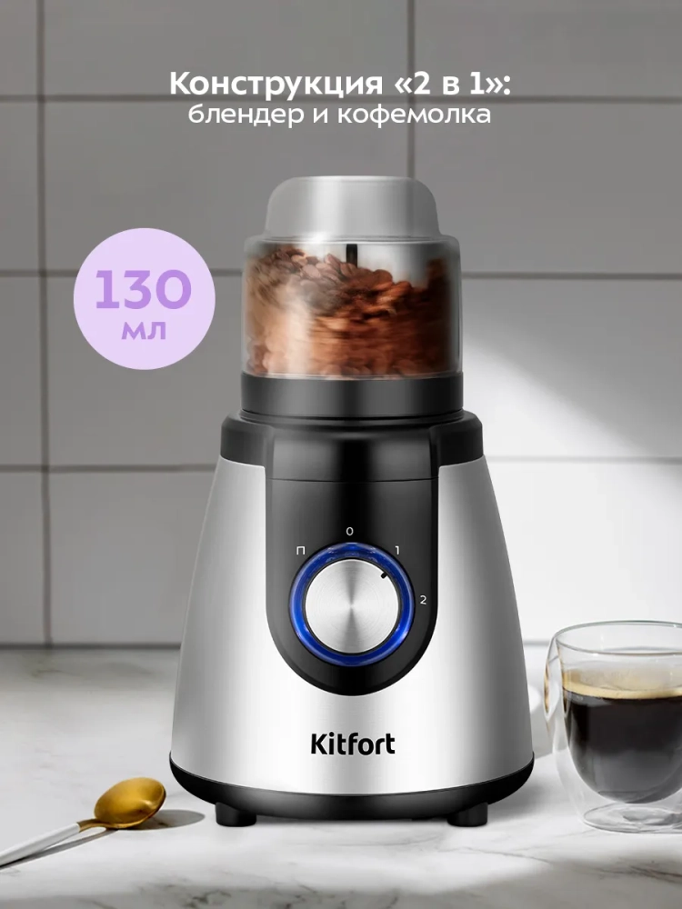 Блендер «2 в 1» Kitfort КТ-3532 выполняет функции не только блендера, но и кофемолки.