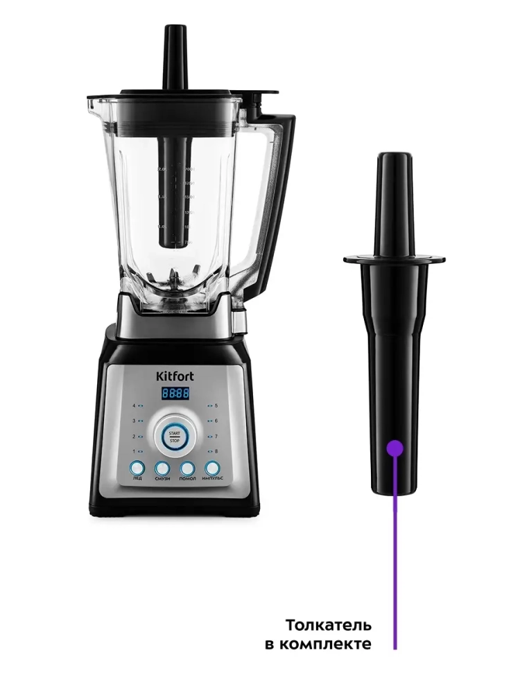 Блендер Kitfort КТ-1399 с кнопочным управлением предназначен для приготовления пюре, взбивания, измельчения и смешивания. Прибор идеально подходит для смешивания фруктовых напитков, молочных коктейлей, супов-пюре, соусов и детского питания. В модели есть специальные программы, предназначенные для приготовления смузи, колки льда, измельчения, а также импульсный режим. Есть возможность выбрать скорость вращения лезвий. Блендер оснащен вместительной пластиковой чашей с мерной шкалой объемом 2 литра, в крышке которой есть отверстие, закрываемое колпачком, для добавления ингредиентов непосредственно во время работы. В комплекте к блендеру идет толкатель, который может понадобиться при измельчении твердых ингредиентов. У блендера есть защита от включения без чаши. Блендер оснащен надежным двигателем мощностью 2000 Вт, рассчитанным на длительный срок эксплуатации. 8 лезвий блендера выполнены из нержавеющей стали и обеспечивают долгий срок службы.