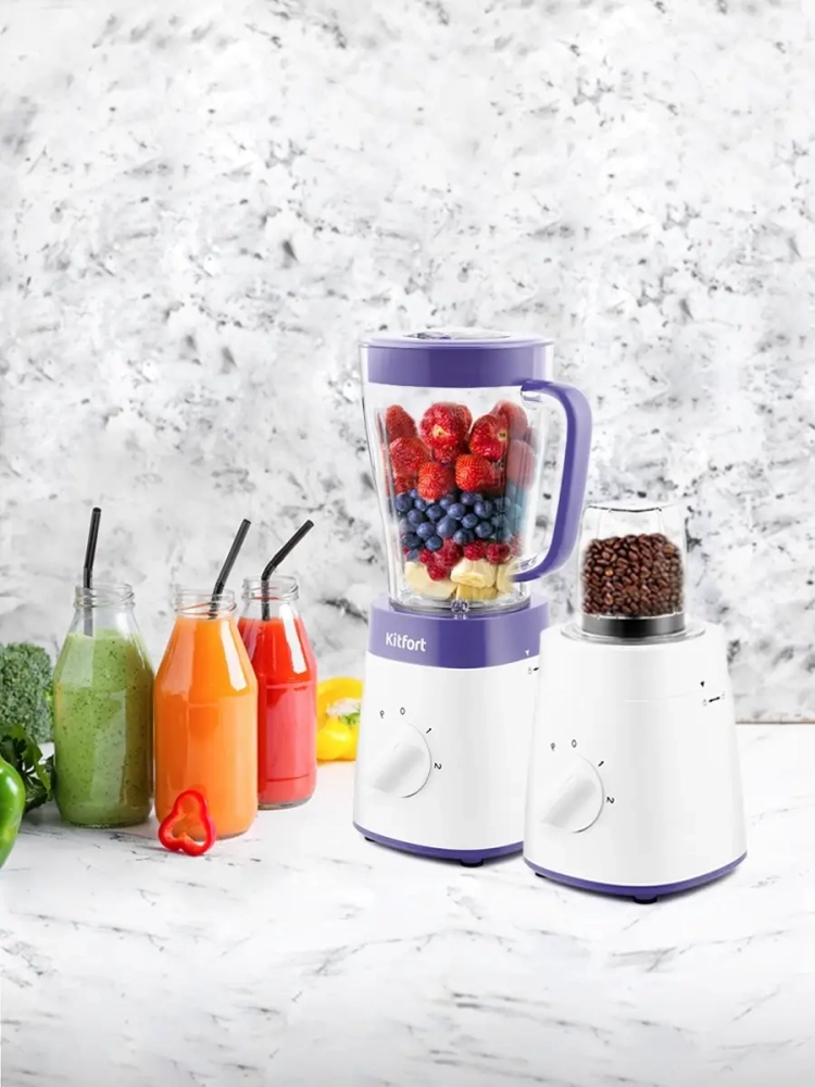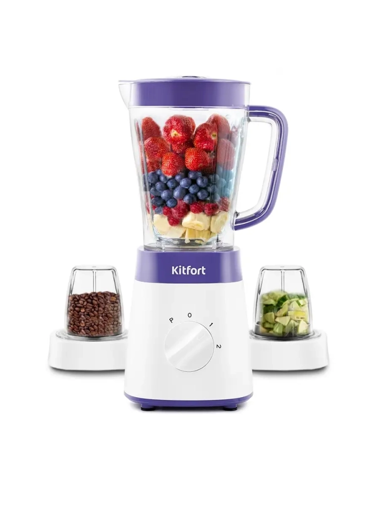Блендер 3 в 1 Kitfort КТ-3031 выполняет функции не только блендера, но также измельчителя и кофемолки. Блендер оснащен регулятором скорости, который позволяет переключать скорость работы. Измельчитель позволит быстро измельчить мягкие продукты, такие как мясо, твердый сыр, помидоры, огурцы, перец, травы, ягоды и многое другое. Кофемолка с легкостью справится с кофейными зернами, специями и орехами. Чаши кофемолки и измельчителя выполнены из прозрачного пластика, что очень удобно для контроля над процессом измельчения. Блендер оснащен вместительной пластиковой чашей емкостью 1,5 л с мерной шкалой. В крышке чаши есть специальное отверстие, закрываемое колпачком, для добавления ингредиентов непосредственно во время работы. Колпачок может использоваться как мерный стакан. Управление блендером осуществляется при помощи регулятора скорости. Переключение скоростей позволяет выбрать оптимальный способ смешивания различных ингредиентов.