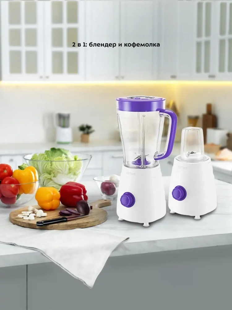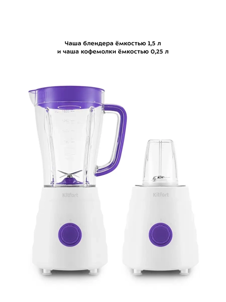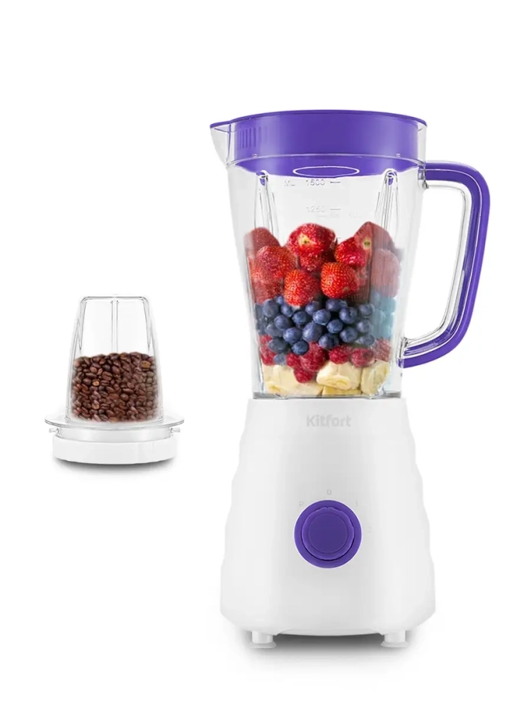 Блендеры предназначены для смешивания фруктовых и фитнес-напитков, молочных коктейлей, эмульсии, муссов, супов-пюре, соусов и детского питания. Блендер 2 в 1 Kitfort КТ-3054 выполняет функции не только блендера, но также измельчителя. Блендер оснащен регулятором скорости, который позволяет переключать скорость работы. Измельчитель позволит быстро измельчить мягкие продукты, такие как мясо, твердый сыр, помидоры, огурцы, перец, травы, ягоды и многое другое. Благодаря прозрачной чаше измельчителя удобно наблюдать за процессом и контролировать степень измельчения. Блендер Китфорт оснащен вместительной чашей емкостью 1,5 л с мерной шкалой. В крышке чаши есть специальное отверстие, закрываемое колпачком, для добавления ингредиентов непосредственно во время работы. Колпачок может использоваться как мерный стакан. Емкость мерного колпачка 50 мл. Для обеспечения безопасности блендер может работать только с установленной чашей на моторном блоке.