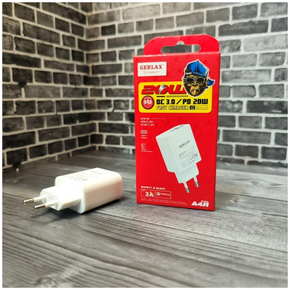 Сетевое зарядное устройство GERLAX 20W блок питания Type-C с поддержкой быстрой зарядки.