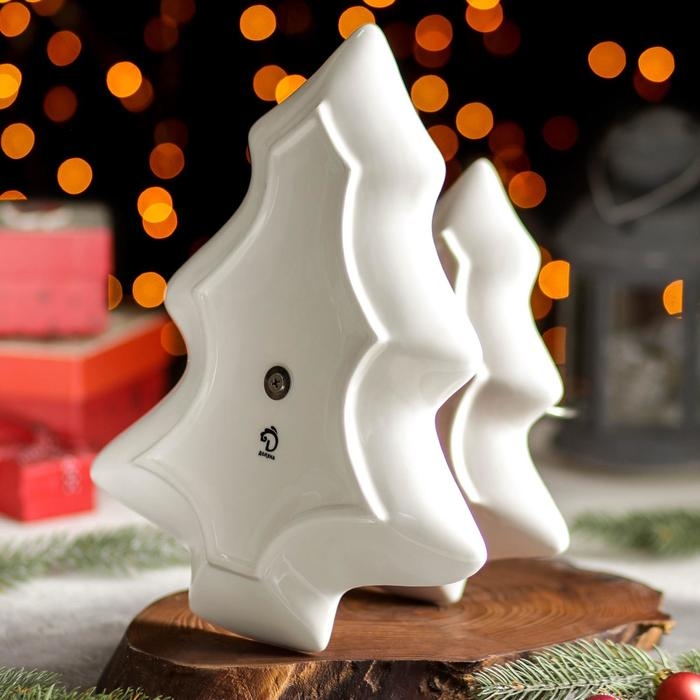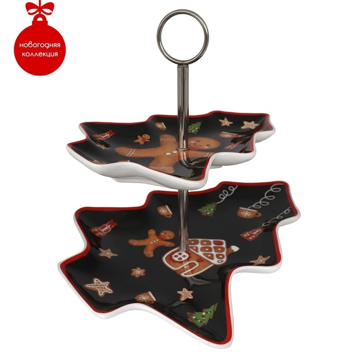 Блюдо фарфоровое 2-х ярусное Доляна «Новый год. Пряничное волшебство», верхний ярус 21×17×2,2 см, нижний ярус 29×24×26 см